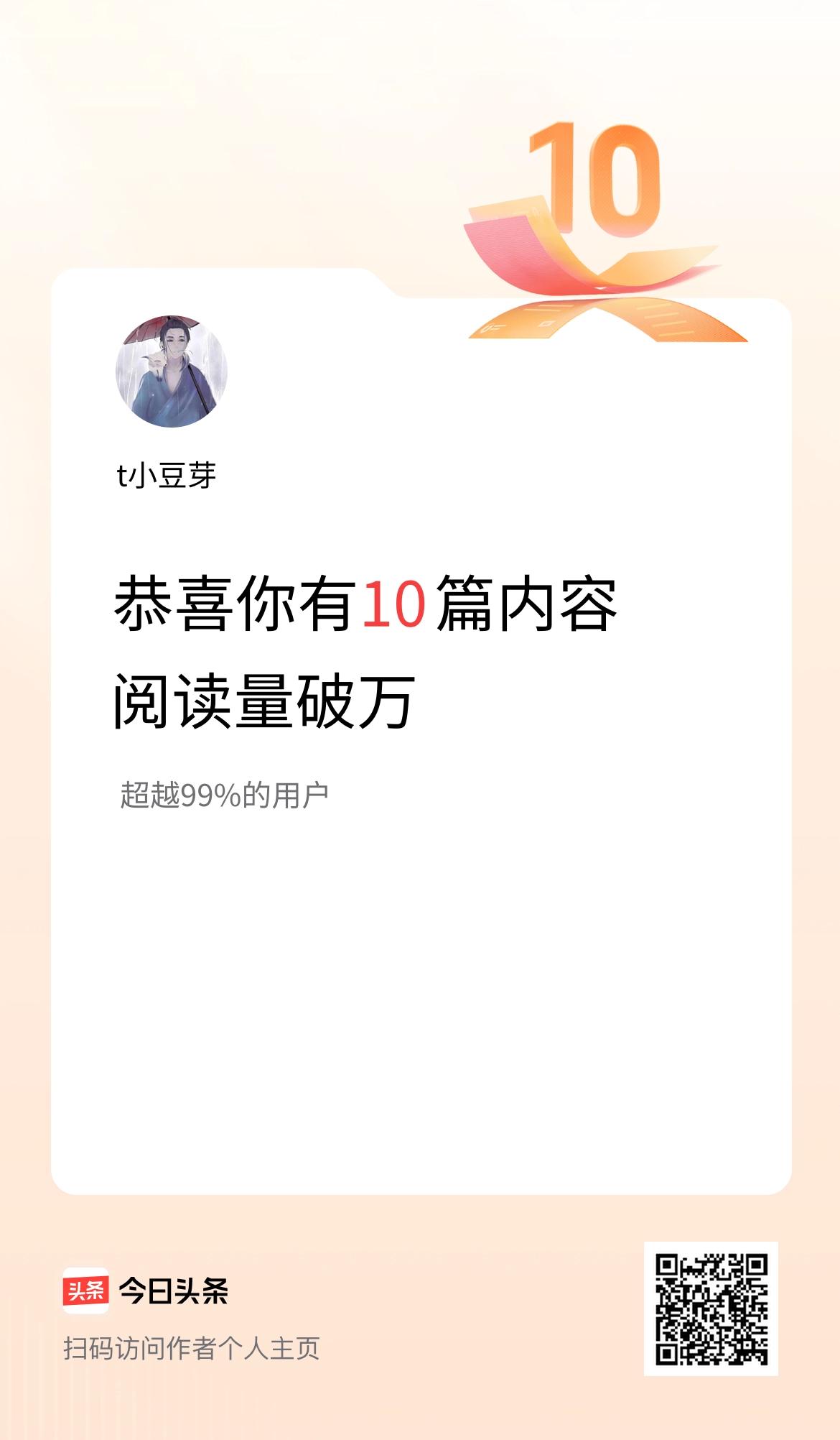 我在头条有10篇内容阅读破万了!继续加油