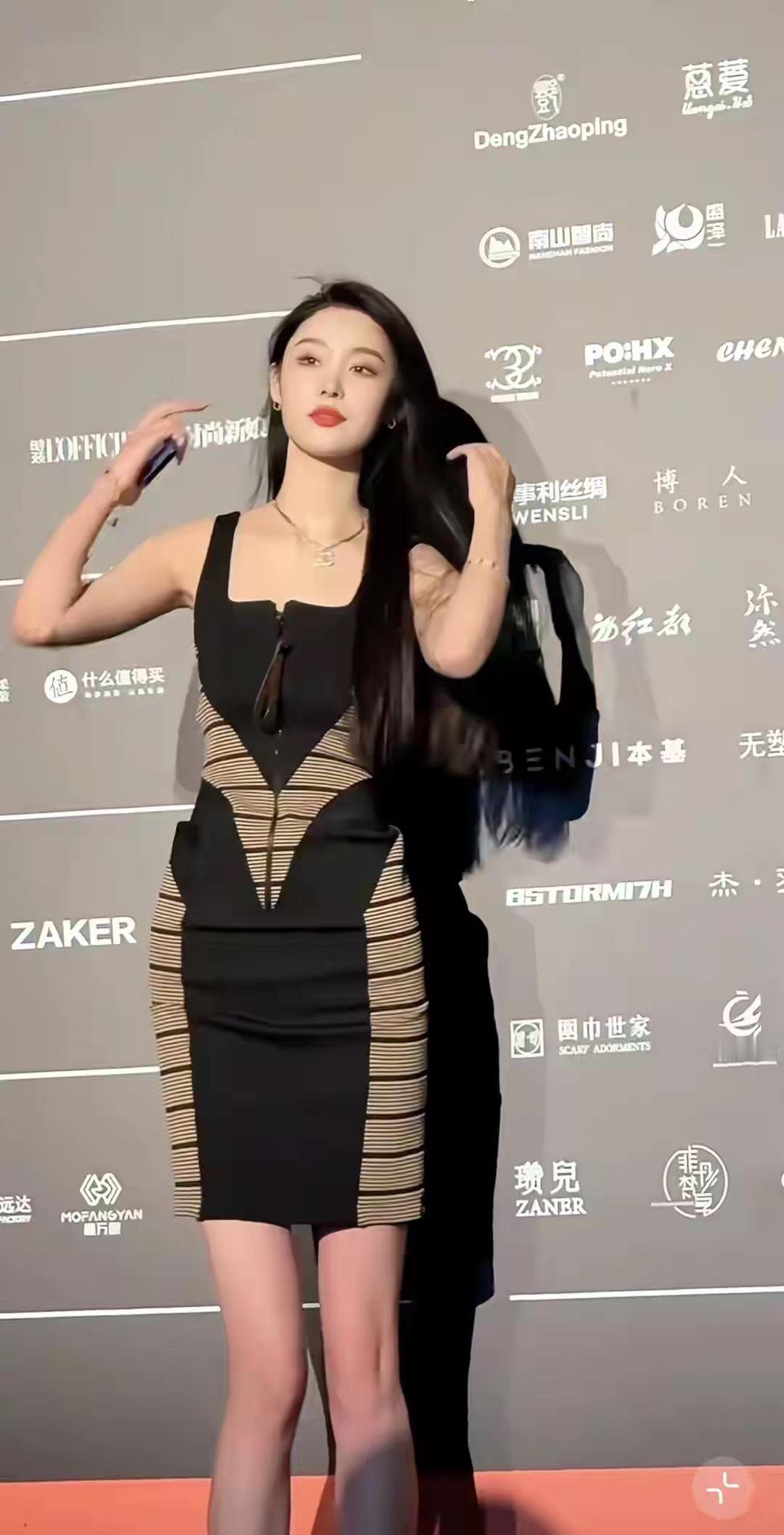 倪妮一身深V亮片修身黑裙,闪耀之余尽显复古清冷气质~2025娱乐年终盘点非正式