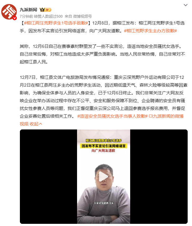 造谣安全员骚扰女选手当事人致歉当事人就造谣安全员骚扰女选手一事道歉,坦言因情绪失控编造谎言。这起事件里,安全员被无端指责,承受巨大压力,网络谣言的杀伤力可见一斑。每个人都该为自己的言论负责,别让情绪左右判断,别让无辜者成为谣言的牺牲品。