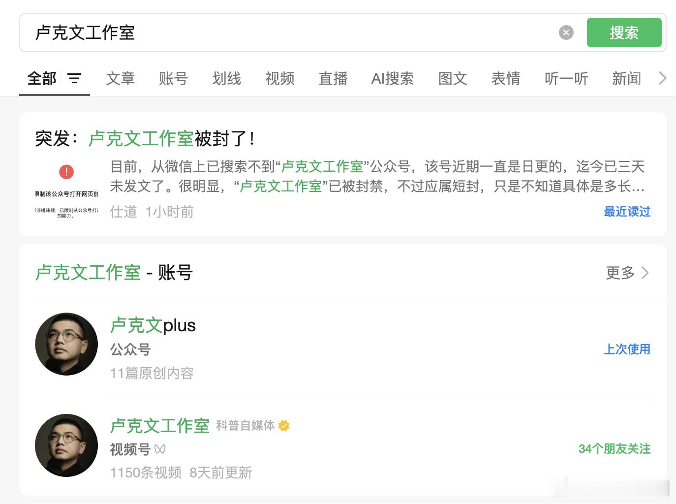 卢克文工作室的公众号搜索不到了!卢克文工作室