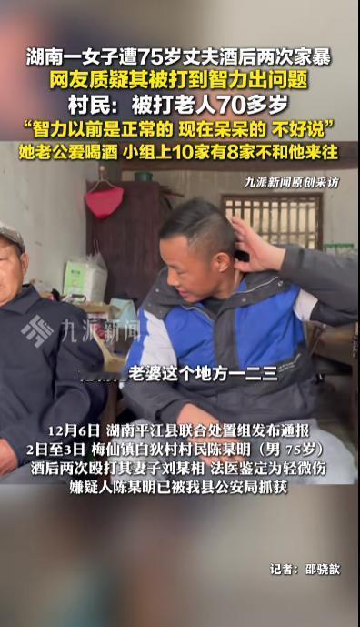 七旬老太遭75岁丈夫酒后施暴,村民称其常年忍受,官方回应引争议 近日,湖南平江县一名七旬女性被其75岁的丈夫酒后家暴,导致面部肿胀、耳朵变形,引发广泛关注。目前,施暴者陈某明已被警方控制。 据同村村民反映,受害者刘某相性格老实,长期遭受丈夫殴打却从不还手。陈某明嗜酒、脾气暴躁,在村中人际关系很差。两人育有子女,女儿出嫁且身体不佳,儿子在外务工,老人生活状况令人担忧。 事件引发网络热议后,当地相关部门作出回应。对于受害者伤势,有工作人员描述为“表皮伤”“没什么大伤”,并称刘某相此前精神就“有点小问题”。这一说法与网络流传的伤势照片及村民“智力以前正常”的表述形成反差,许多网友对回应态度表示不解。 近年来,针对老年人的家庭暴力问题逐渐进入公众视野。这起事件不仅涉及家庭暴力,更折射出农村高龄老人、特别是老年女性在婚姻中面临的困境与无助。如何为长期遭受家暴的老年人提供切实有效的救助与保护机制,成为社会关注的焦点。 目前,受害人已出院回家。她能否真正脱离暴力环境,仍需各方持续关注与援助。