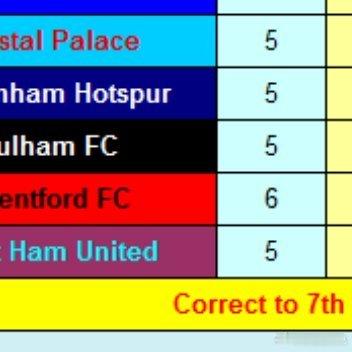 本赛季截止英超第15轮后7支英超伦敦球队的内战积分榜,其中阿森纳以5胜1平的不败战绩领跑,西汉姆联则5战全败一胜难求。阿森纳西汉姆联vs阿森纳