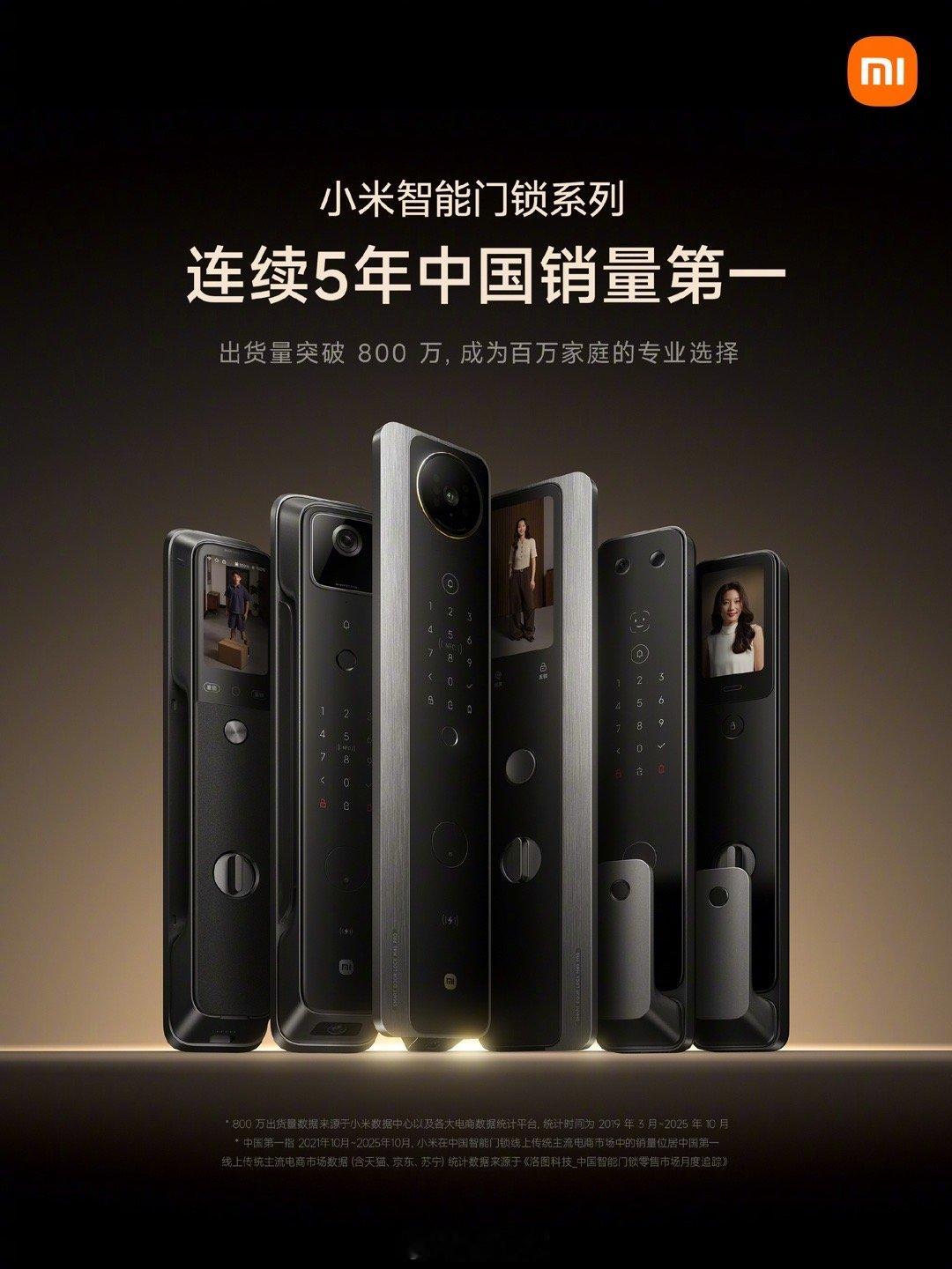 这赛道还是太安静了,小米智能门锁系列,线上连续五年中国销量第一,出货量突破八百万