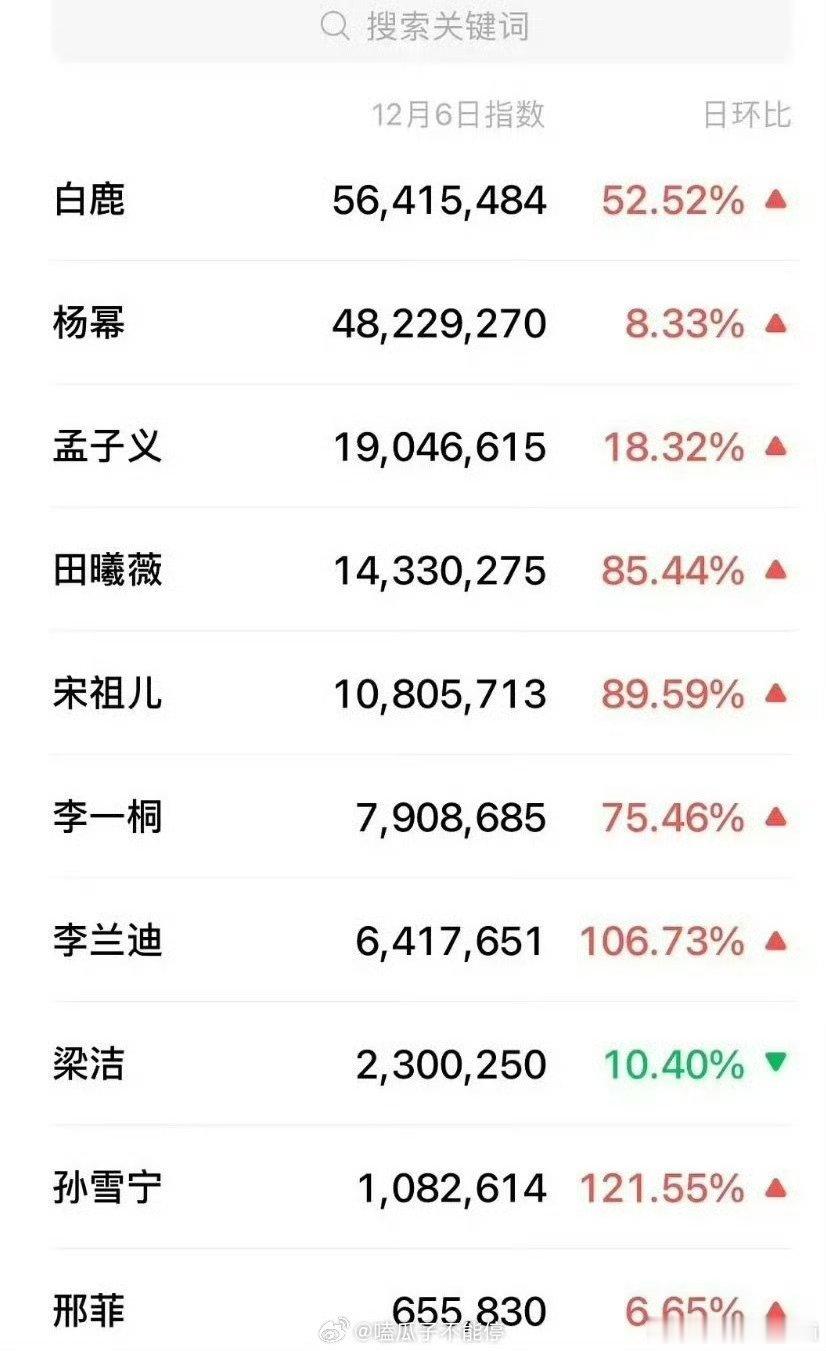 尖叫之夜女明星微指排名top1:白鹿 观众缘真的太好了吧