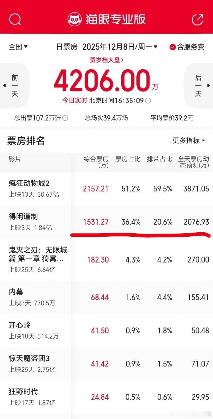 得闲谨制观影口碑 小黑子被打脸了,今天周一票房跑赢了预测,票房占远大于排片占比,口碑爆棚了,是金子就会发光,全网一致好评的电影,必须的