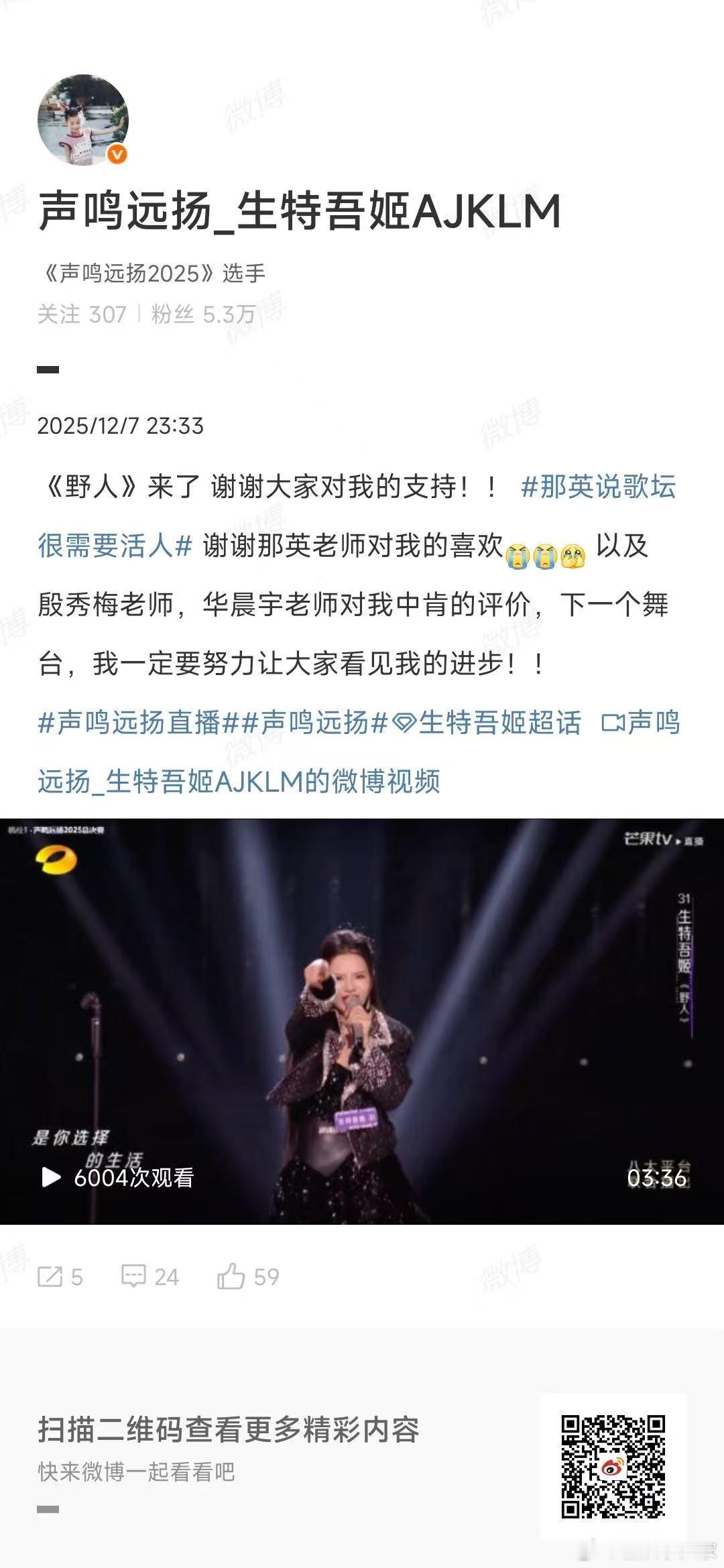 华晨宇华晨宇 上一期没来亏了声鸣远扬秀梅老师精准补刀:花花,你走这一天,错过的精