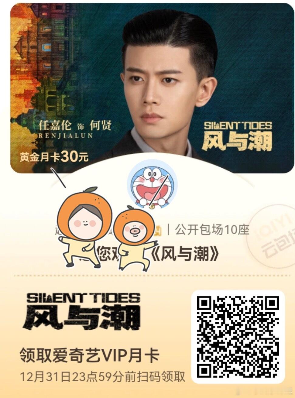 请管理帮忙包场10座支持任嘉伦的风与潮谢谢各位嘉人姐姐平时的支持 12.9号爱奇艺不见不散哦