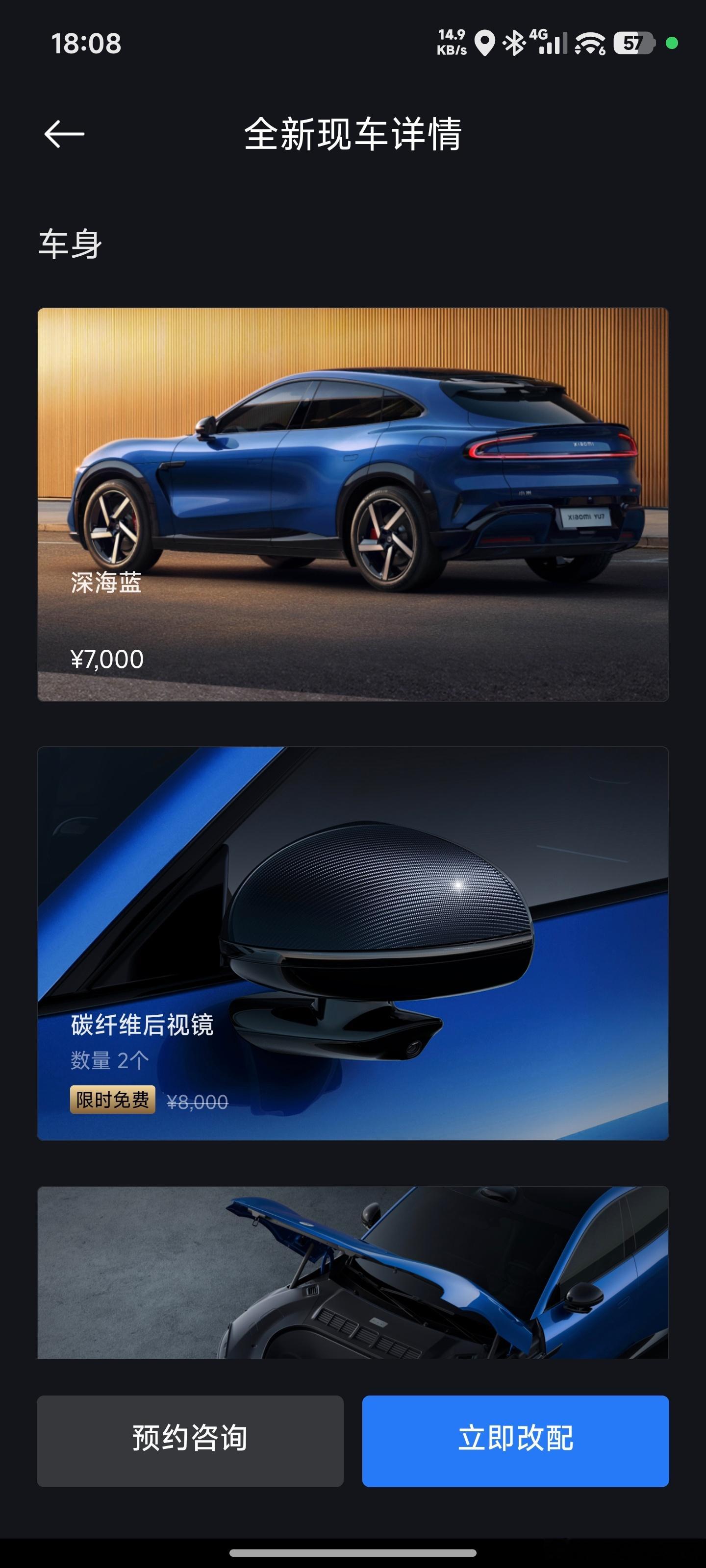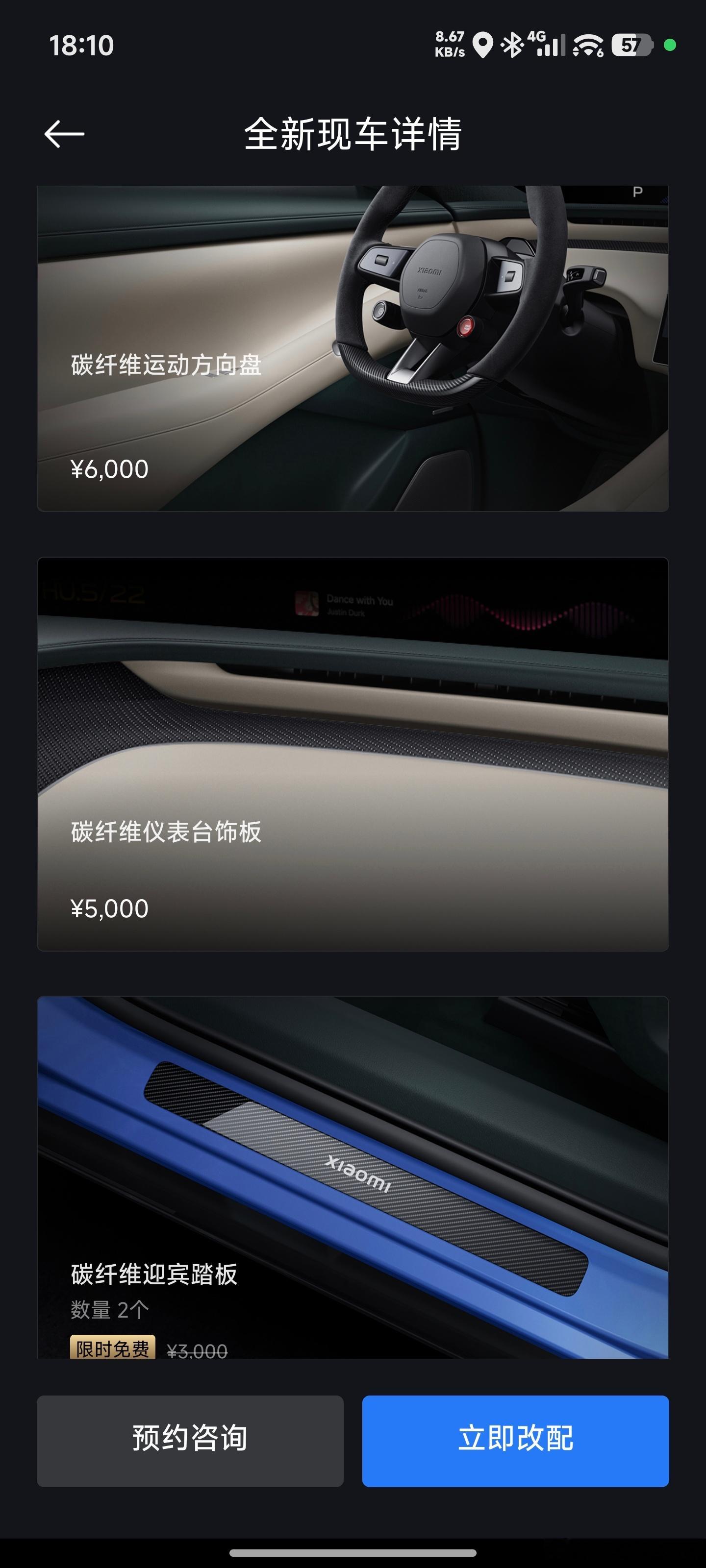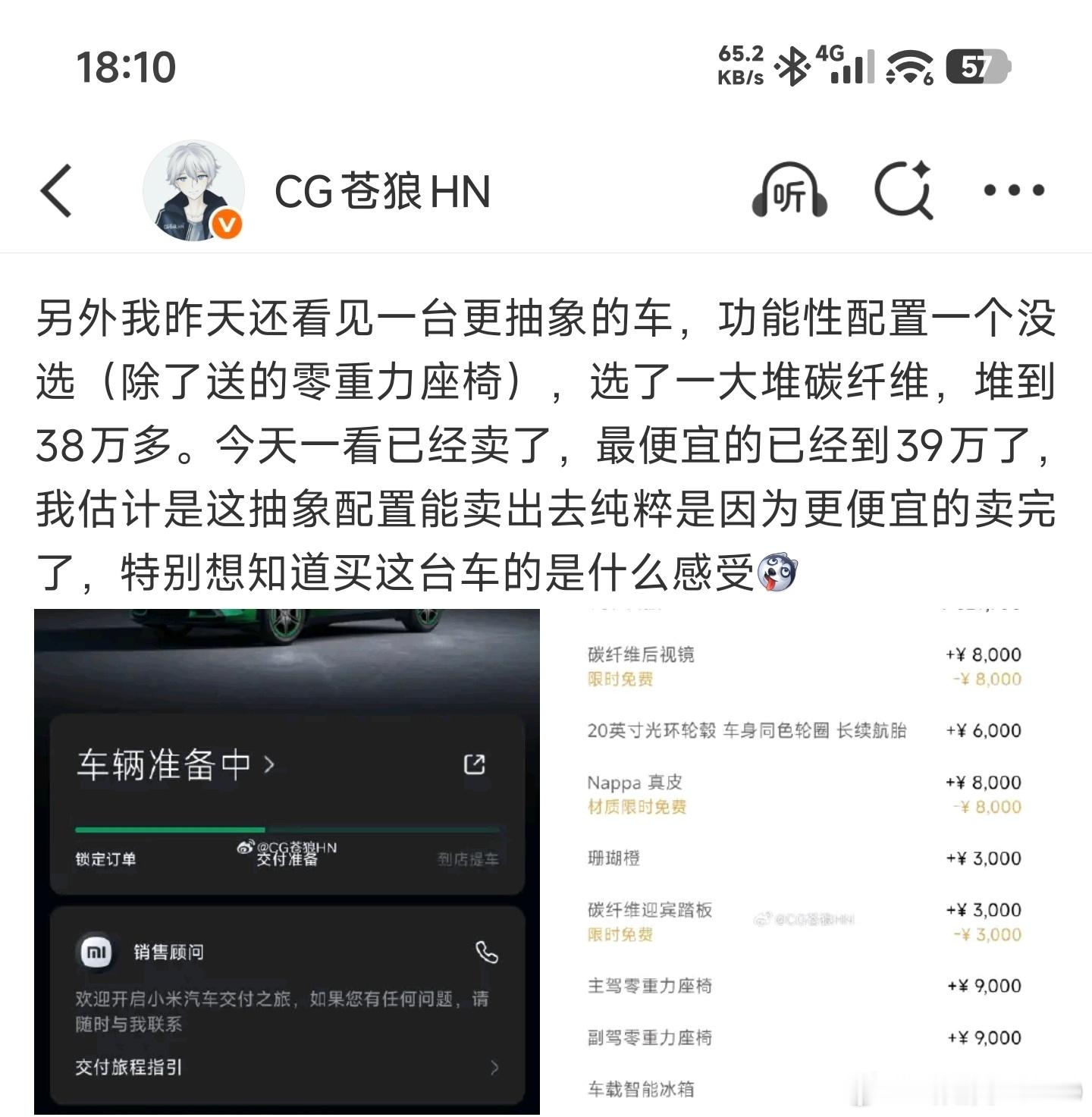 我还真又看到一辆这种配置,一辆YU7 MAX,选了19寸低滚阻轮辋+节能轮胎但凡可以选择碳纤维的全都选满了,售价高达41.69万,现车优惠2.2万后也要39.49万碳纤维选装件价值3.8万了这种配置大家觉得合理吗?