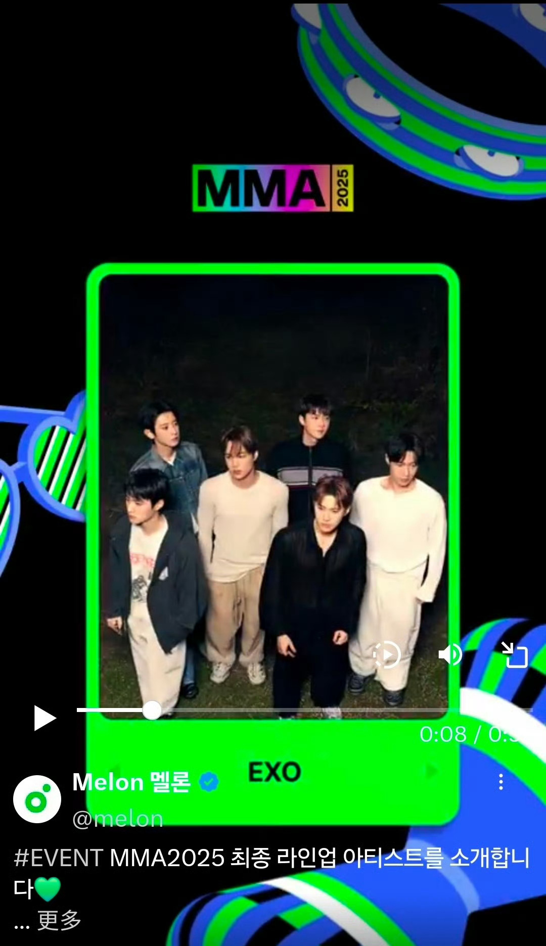 EXO官宣MMA EXO将于12月20参加 2025 Melon Music Awards 金俊勉 朴灿烈 都暻秀 金钟仁 吴世勋 张艺兴