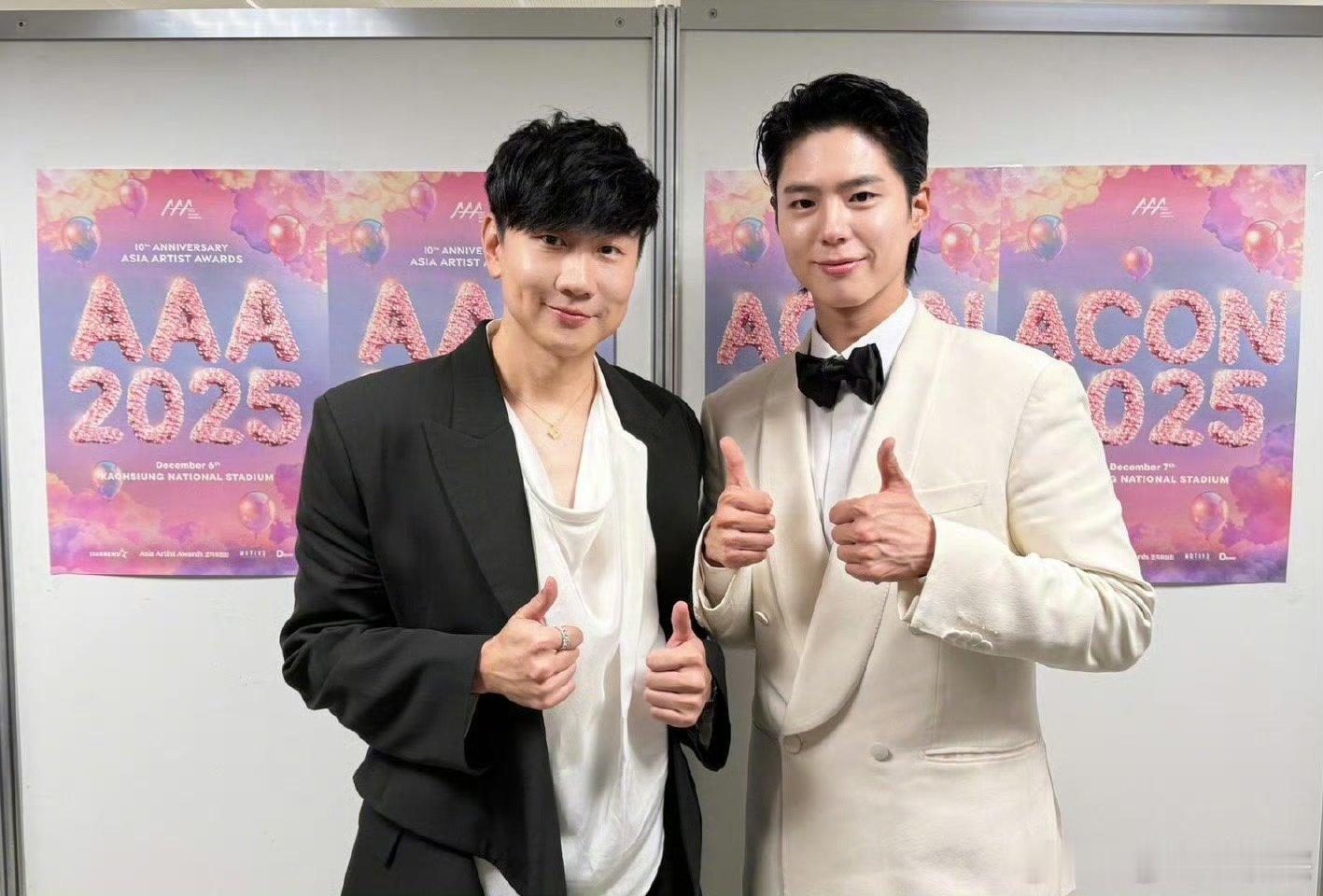 林俊杰 大牌小耍 朴宝剑下场正好遇到唱歌回来的林俊杰,两个人又开始互笔大拇指夸奖对方哈哈哈哈哈哈
