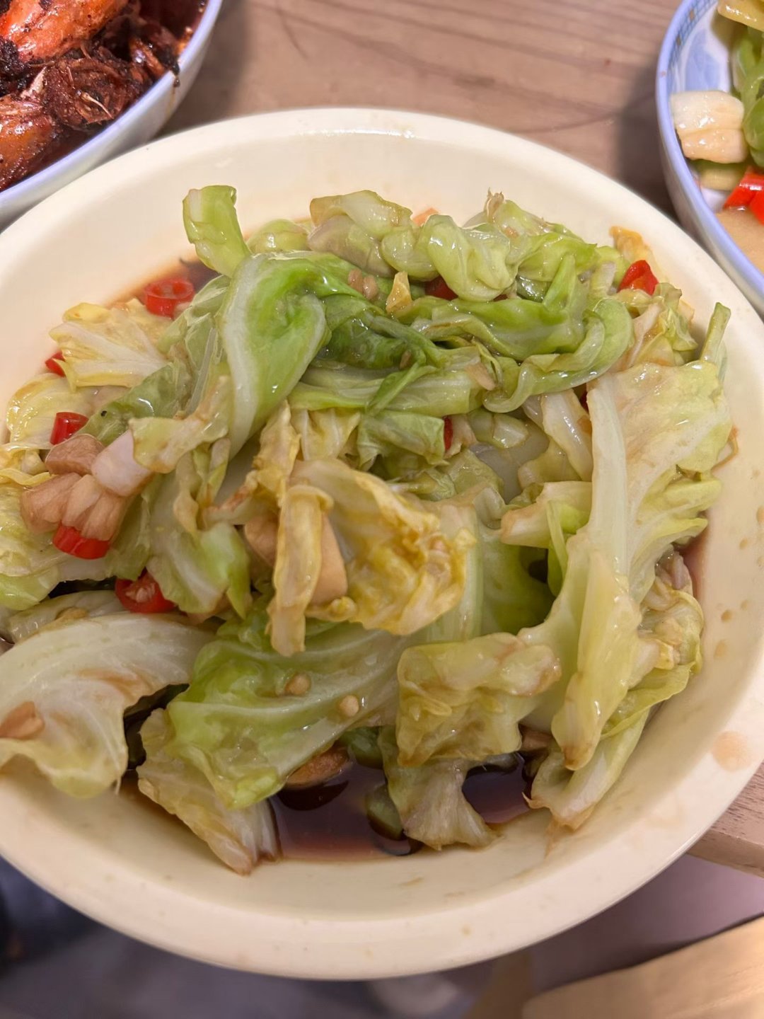 番茄炒蛋依旧很下饭,辣炒虾被我炒的有一点焦了