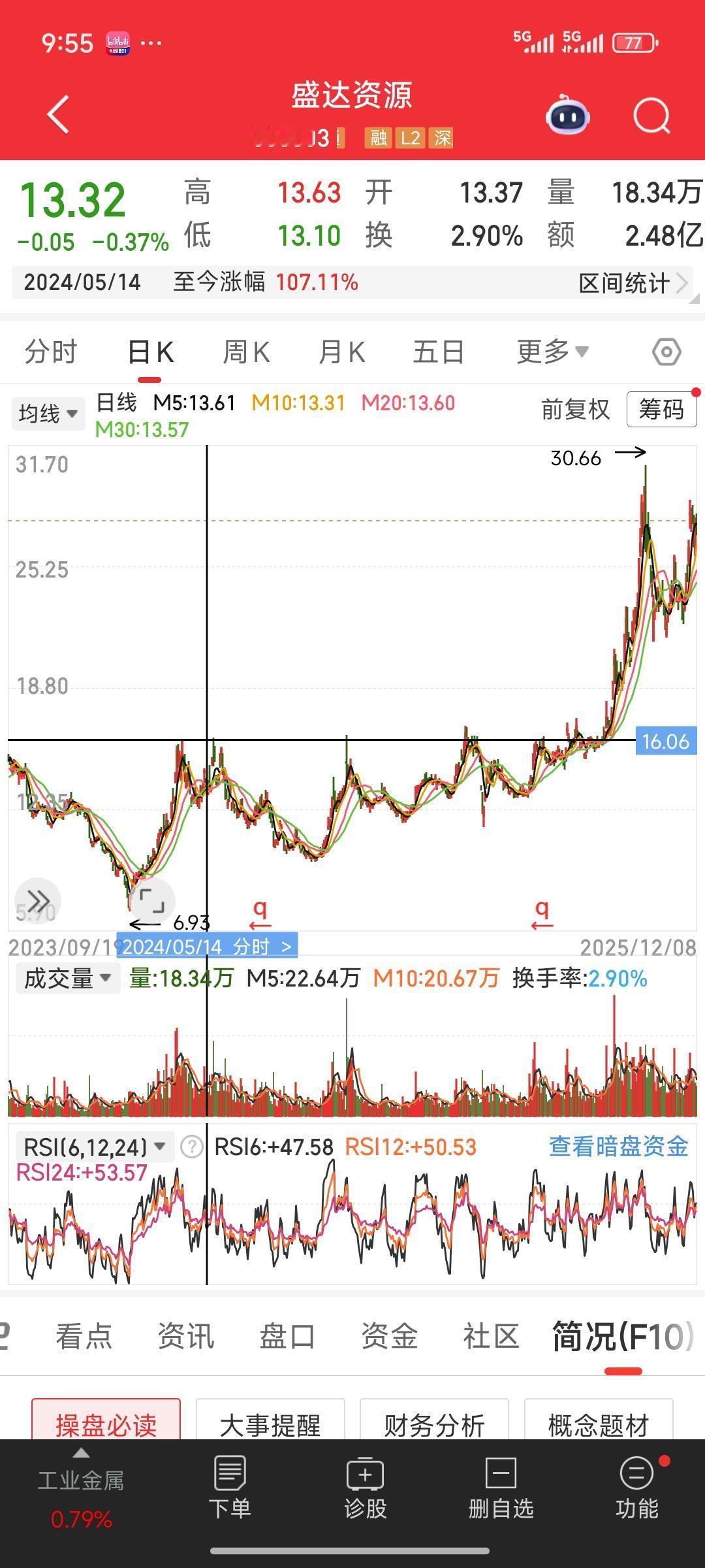 今日复盘,我惊觉又与一只牛股——盛达资源失之交臂。买入后刚有了点盈利,见股价放量,我便匆忙卖出。待股价回调时,我却没了再次进场的胆量,眼睁睁看着后续的主升浪溜走,如同放走了一块“大肥肉”。 这都怪我那短线思维,还有手痒就想操作的毛病,以及对目标缺乏坚定的认知。 盛达资源 盛达集团 盛达精选 中盛达 南京盛达 盛达机电 盛达建材集团