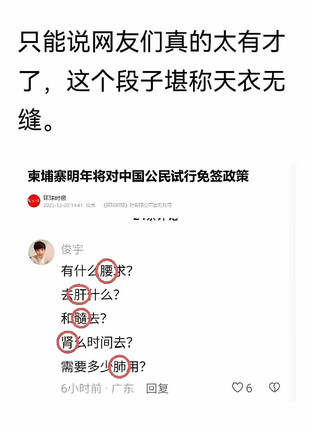 自从俄罗斯对中国免签,柬埔寨对中国免签之后,网上一片欢声笑语,大家都充满了激情开展各种各样的创作,各种作品犹如过江之鲫,数不胜数,但是唯独这两个网友的创作,最得精髓,深得我心,大受欢迎!
