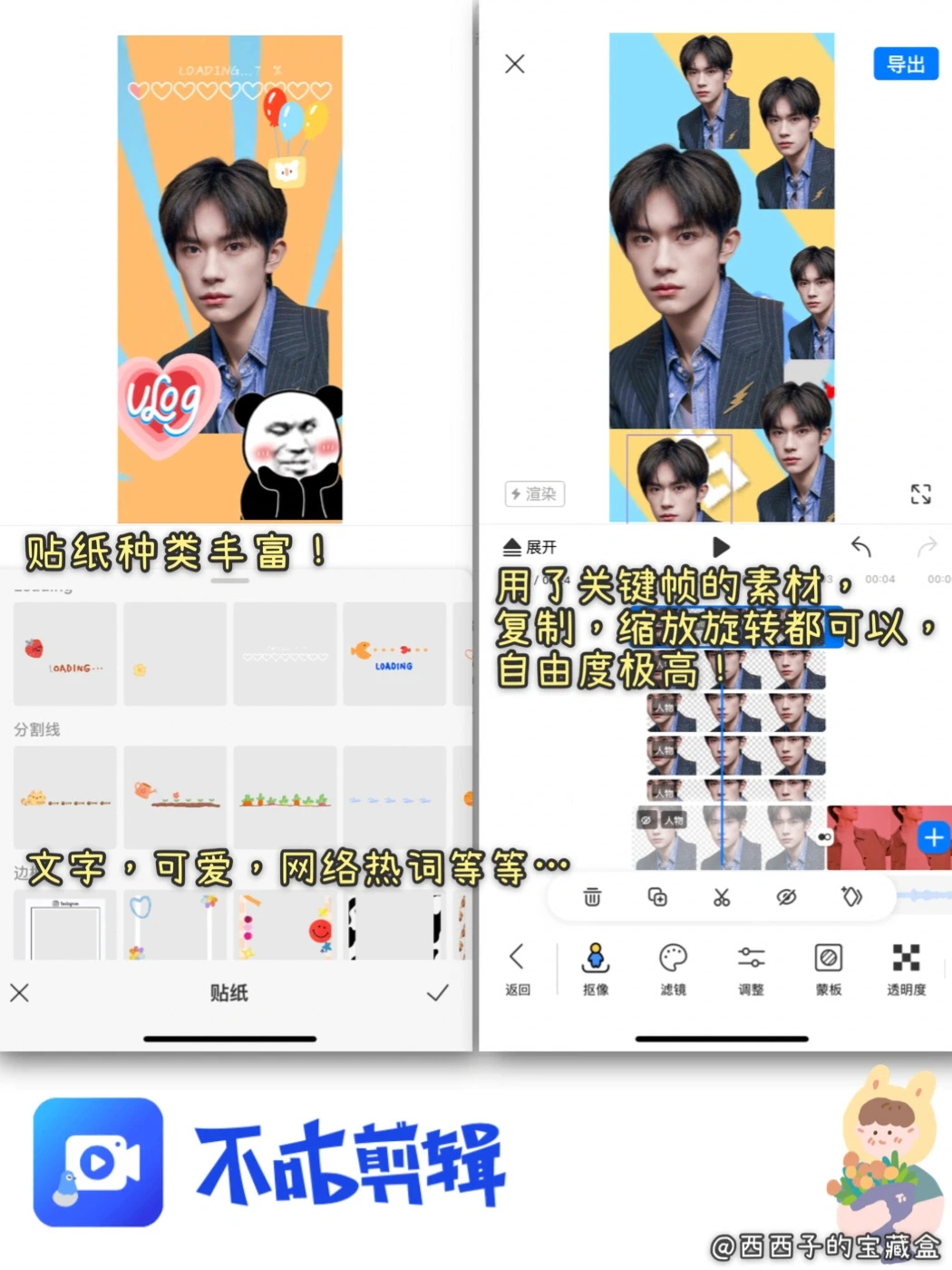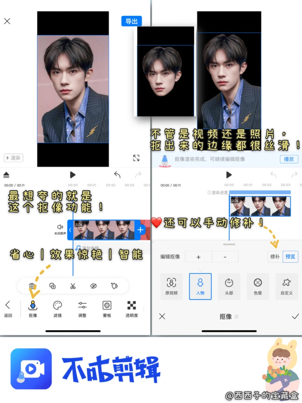 2⃣️一键智能「抠像」功能精准快速,抠像边缘很丝滑,🤟就算有翻车也可以手动修补,非常nice!