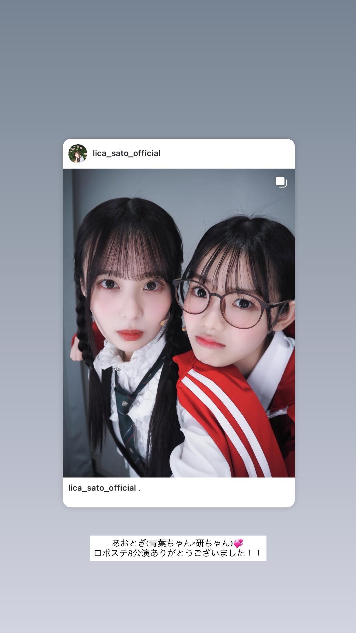 佐藤璃果「『ロボコォォォン!-ROBOT COOONTEST!-』ありがとうこざいました!!🤖 日々変化する舞台とっても楽しかったです! ご観劇ご視聴頂きありがとうございました! 好きなことに真っ直ぐな研ちゃん素敵 高専に通っていた時期もあったので ロボコンが題材の舞台に出演できて嬉しかったです! 青葉ちゃんと色んなことできて楽しかったなぁ またね研ちゃん🛸」ロボステlicagram