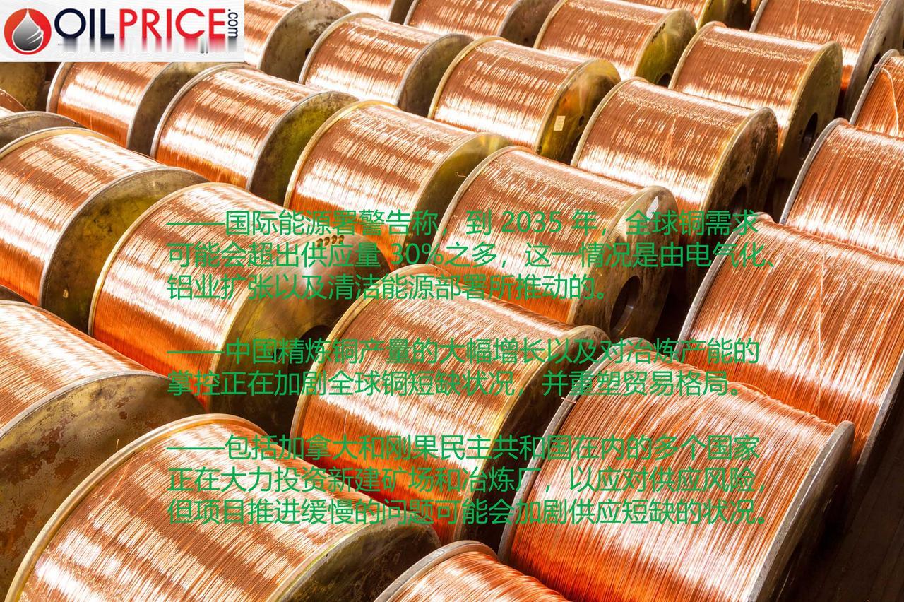 全球铜短缺危机即将来临吗? 国际能源署(IEA)预计在未来十年内将出现严重的铜短缺情况,因为对这种金属的需求将大幅增长。除非全球铜矿开采量以更快的速度增加,否则需求可能会超出供应多达 30%。与此同时,预计会有几个新的铜生产大国出现,以抗衡中国在全球铜市场上的主导地位,这些新国家将通过开发新的采矿项目来实现这一目标。 国际能源署的关键矿产分析师肖班·迪尔在去年 12 月举行的年度关键矿产协会会议上表示,到 2035 年,由于全球需求的增加(主要是由于能源转型和人工智能的发展),铜的供应可能会短缺多达 30%。 铜矿开采行业面临着诸多挑战,包括矿石品位下降、资本成本上升以及项目开发周期延长。这使得扩大铜产量比其他关键矿产更具难度。迪尔解释道:“我们最担心的就是铜……所以,要迅速增加铜的供应量,这确实是一项极具挑战性的任务。因此,我们尤为关注这一点,并且我想强调,这是未来全球面临的关键问题之一。” 与此同时,国际铜研究组织于 10 月宣布,预计 2026 年全球精炼铜市场将出现 15 万吨的供应缺口,而此前预计的将是 20.9 万吨的供应过剩,这是因为生产增长速度放缓所致。 铜被广泛应用于众多领域,例如电气线路铺设、电力传输、管道工程、电子设备、可再生能源技术以及工业机械等,这得益于其良好的导电性和导热性、耐腐蚀性以及可塑性。2024 年,铜矿市场价值达 92.4 亿美元,预计到 2035 年将增长至 139.3 亿美元,2025 年至 2035 年期间的复合年增长率将达到 3.8%。 中国在市场的主导地位使得许多国家开始担忧其铜供应链的稳定性。据 8 月份的估计,到 2025 年,中国的精炼铜产量将创下历史新高,因为其冶炼行业不断增强的实力使得面对全球铜矿石短缺的局面,海外竞争对手纷纷倒闭。目前,中国贡献了全球超过一半的精炼铜产量。 2023 年末,全球铜短缺问题开始显现,原因在于矿山关闭以及冶炼产能的迅速扩张,这导致加工费(即冶炼厂将精矿转化为金属所获得的费用)下降,从而降低了盈利能力。据麦格理集团的大宗商品策略师爱丽丝·福克斯称,中国的冶炼厂能够通过利用现有库存以及从政府的消费商品回收计划中获取废料,比进口精矿更快地提高产量。 为了强化自身的供应链,一些国家正在大力投资铜矿开采和精炼业务。11 月,加拿大公司Ivanhoe矿业公司在刚果民主共和国的Kamoa-Kakula地区启动了其年产 50 万吨的铜冶炼厂,该公司称这是非洲最大的、最环保的铜冶炼厂。预计其首批精矿原料将于年底准备就绪。 Ivanhoe矿业公司的创始人罗伯特·弗里德兰表示:“今天的仪式并非仅仅是一种仪式;它代表着Kamoa-Kakula矿场变革性变革的传承……从我们在 2008 年首次发现高品位铜矿的地方开始,如今我们借助由传统赋予祝福的火焰,为一座将树立全球铜冶炼新标准的设施提供动力。” 加拿大也在国内扩大其铜矿业务,通过重启项目和开发新矿来实现这一目标。尽管到 2023 年,不列颠哥伦比亚省的铜矿产量较峰值下降了近 18%,原因是矿藏老化以及审批流程放缓,但自 2023 年以来,加拿大的铜产量却增长了约 6.2%。然而,一些项目因成本上升而被推迟。 加拿大矿业协会的首席执行官皮埃尔·格拉顿近期表示:“我预计铜价在未来几年将大幅回升。”这一观点从人们对重启或扩大铜矿生产兴趣的日益浓厚中可见一斑。 TECK资源公司的Highland谷矿场的生产活动将持续到 2040 年以后。纽蒙特公司的Red Chris矿场也在继续运营,并且有望在 2030 年之前使全国铜产量增加多达 15%。新黄金公司的New Afton矿场的年产量预计将达到 45000 吨。与此同时,Foran矿业公司预计将于 2026 年在萨斯喀彻温省的McIlvenna湾矿场开始运营。 随着铜的供应缺口不断扩大,以及中国在铜市场中的主导地位日益增强,未来几年全球铜供应链可能会受到冲击,因为这种关键金属的需求在全球范围内持续增长。除非在未来十年内有几座新的大型铜矿投入生产,否则铜的供应缺口将会继续扩大,这可能会阻碍全球新可再生能源产能的部署。