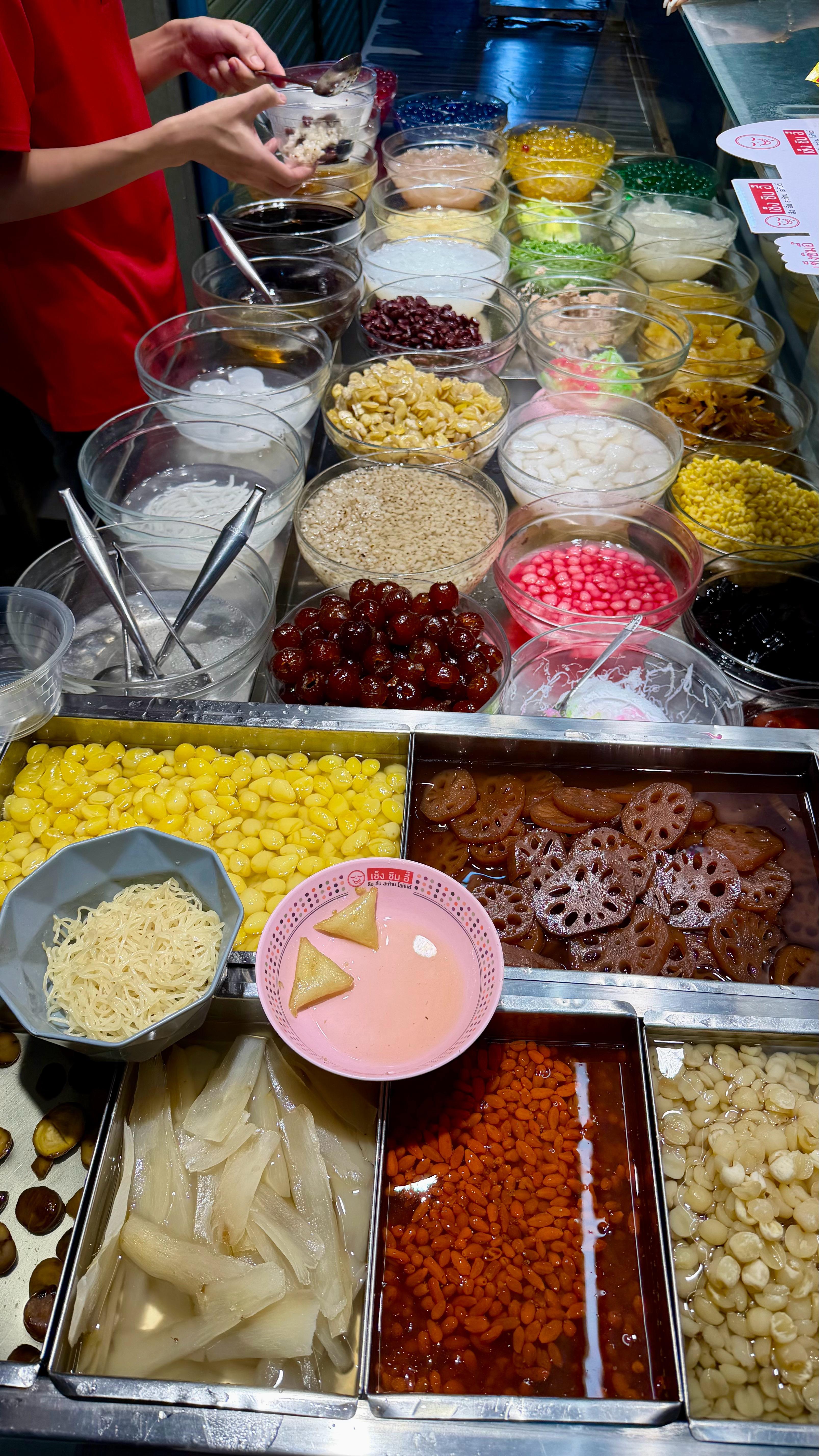 泰国美食 泰国曼谷的街头,第二次来这几个摊吃一份自选糖水,60泰铢,附近再吃一份铁锅蟹粉、虾粉,盐烤鱼、血蛤都尝一尝2-3百泰铢,这条安静的生活小巷,有那么几家小店,藏着曼谷朴实的烟火气!曼谷旅游曼谷美食 泰国·Somsak Pu Ob (สมศักดิ์ ปูอบ)