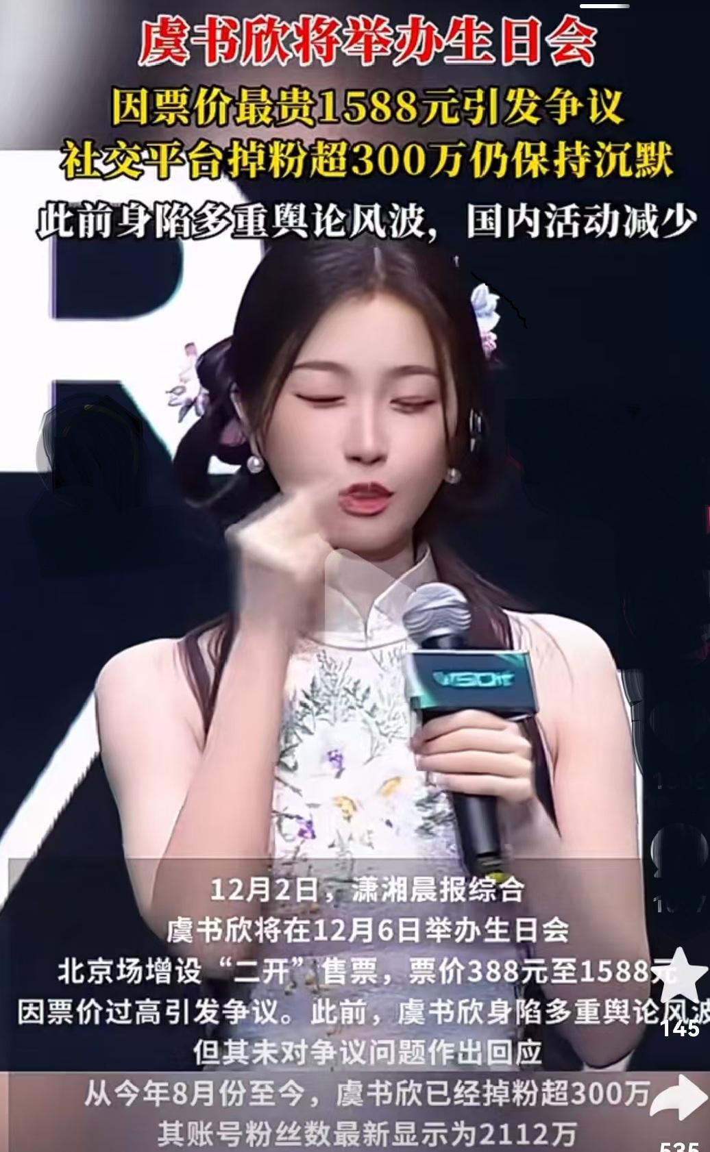 果然是有钱人赚钱的门路五花八门,随便一个方法都会有人买单。一个叫虞书欣的网络红人,打算给自己举办生日会,这本来是个稀松平常的事情,可是人家偏偏能玩出花来,竟然为自己的生日会公开售票,并且票价高达1588元,实在是匪夷所思。 普通人过生日,一般都是花钱,这网红真实有头脑,不但不花钱,还能大赚特赚,生日会门票堪比国际巨星的演唱会门票,甚至一些一线明星都自愧不如吧。 有人可能不知道虞舒欣是谁,其实我也不知道,所以我就百度搜了搜,结果是这样的:虞书欣是中国内地女演员、歌手,也是女子演唱组合THE9前成员。1995年生于上海。参演过多部电视剧。 不搜不知道,搜了不知道的更多了,话说这个THE9的组合,我压根没有听说过,看了下,她参演的电影电视剧,我也一部没看过,怪不得我不认识这个姑娘呢。