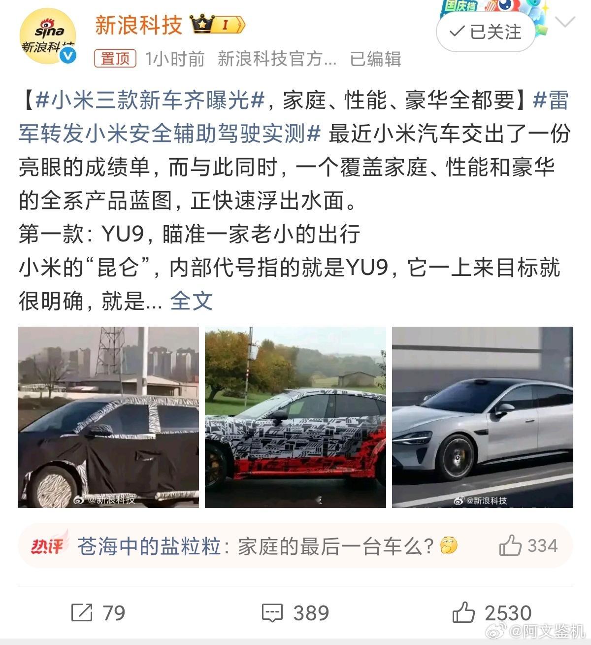 小米三款新车齐曝光三辆车,YU9主打家庭,YU7GT主打操控型SUV,SU7 L主打行政商务,话说这之前就已经有传闻了,怎么今天突然曝光上个热搜,加上su7和yu7产线,小米对于友商的杀伤力马上要来了,一米穿XX要继续上演。