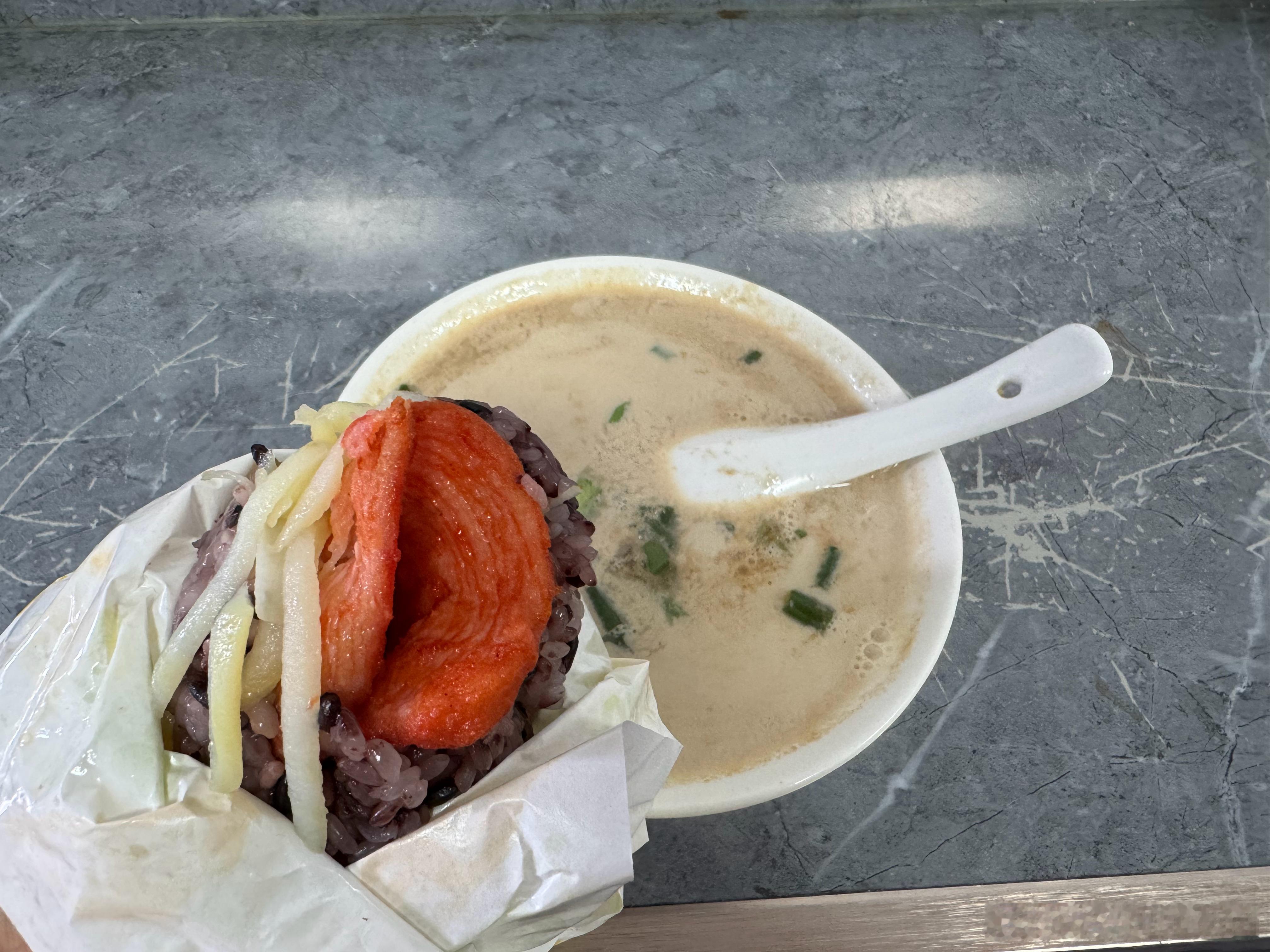 早☀️今天送完安姐又去周末骑手认证的那家早餐店啦,老板为了追求好的口味,里脊是现炸的,饺子也是现煎的,去了这么多早餐店,还第一次有这种待遇一般都是从桶里拿出一个里脊,饺子也是一大锅煎好闷在那,从里面挑个几只。我今天吃的饭团,有点好吃,怪不得安姐周末一个人差不多吃掉一整个。图 4 是昨天接安姐放学回家路上新买的鹅绒背心,看着很像一件穿了好多年的旧衣有没有?买的时候感觉就是一件能穿十几二十年的衣服给生活加点flow西西生活随记