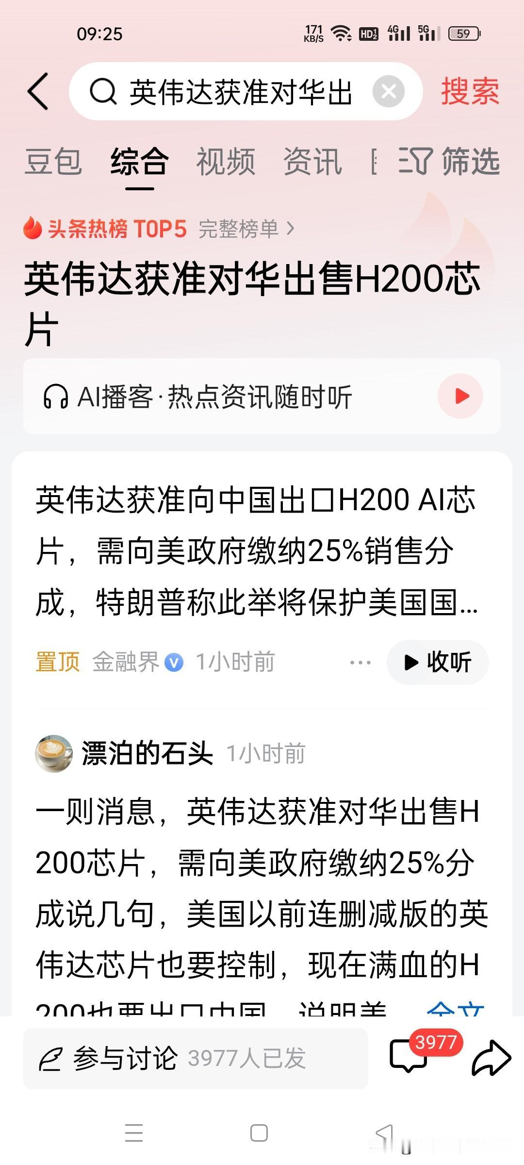 特朗普松绑英伟达H200对华出口,但需要向美政府缴纳25%分成! 12月9日彭博报道,特朗普已敲定批准英伟达向中国出口H200 AI芯片,核心条件直白又苛刻——美国政府要从每一笔销售额里抽走25%的分成。 特朗普是在自己的真相社交平台上官宣这一决定的,一句话终结了和顾问们持续数周的拉锯讨论。字里行间满是掌控感,明确限定销售对象只能是“获批准的客户”。 25%的分成比例更是毫不含糊,不止英伟达受益,英特尔、AMD这类头部芯片厂商也能搭上顺风车,只要符合要求就能拿到对华出口许可。 他还特意强调,此举既能守住美国国家安全底线,又能拉动国内就业,更能稳稳攥住美国在AI领域的领先优势,话说得漂亮至极,可背后的利益算盘谁都能看清。 细究下来,这次放行的H200芯片根本算不上尖端货,是差不多18个月前推出的老款,基于前一代Hopper架构打造,和英伟达现在主推的Blackwell芯片压根不在一个量级。 要知道Blackwell芯片性能强悍,美国本土客户早已批量部署,后续更先进的Rubin芯片也即将落地,这两款核心芯片完全被排除在此次出口协议之外。 说白了,美国放出来的只是自己用剩下的技术,既不想让中国拿到顶尖算力,又舍不得放弃中国市场的真金白银,这种精打细算的操作着实耐人寻味。 英伟达为了这张出口许可付出了不少心力,此前一直积极游说特朗普政府,最初甚至想推动更先进的Blackwell芯片对华销售,最终能争取到H200的放行,已然是一场不小的胜利。 要知道之前的出口管制让英伟达损失惨重,中国作为全球第二大经济体,AI芯片市场需求旺盛,失去这块阵地意味着数十亿美元的营收打水漂,换谁都得急着破局。 现在禁令松绑,英伟达总算能重回中方市场,弥补之前的亏损缺口,稳住自己的市场份额,这波操作无疑是救急的关键一步。 而且这次出口不是毫无门槛,除了要给美国政府缴纳25%的分成,中方客户还得经过美国商务部的严格审核,只有通过审批才能拿到采购资格。这种双重限制,本质上还是美国在掌控主动权。 既想赚得盆满钵满,又想随时掌控芯片流向,所谓的“保护国家安全”不过是冠冕堂皇的借口,核心还是利益与霸权的双重考量。毕竟AI芯片作为高端科技产物,直接关联算力竞争,美国怎会轻易放手,放H200出山,不过是权衡利弊后的折中选择。 换个角度想,特朗普政府的这个决定,也是多方博弈后的结果。持续的出口管制没能达到预期的遏制效果,反而让美国本土芯片厂商承受损失,英伟达的游说只是导火索,核心还是美国不想错过中方市场的巨大红利。 25%的分成看似狮子大开口,实则是美国政府变相收割利润,一边让企业赚钱,一边自己坐享其成,顺带还能维持对AI技术的掌控力,一举多得的算盘打得叮当响。 可这样的操作真能长久吗?靠抽成和限制维系的合作,本身就充满变数,一旦利益失衡,政策随时可能反转。对于中方市场而言,H200芯片的进入能补充部分算力需求,但也不能过度依赖。 毕竟这款芯片不是最先进的,而且采购受美国政府限制,随时可能面临断供风险。科技竞争的核心从来都是自主可控,一味依赖外部技术终究会受制于人。美国放行过时芯片,既能赚走利润,又能延缓中方自主芯片的迭代速度,这种小心思显而易见。 英特尔、AMD等厂商的加入,会让中方AI芯片市场的竞争更加激烈,英伟达想要重新夺回失去的市场份额,也得面临同行的挤压。不过对这些美国厂商来说,能进入中方市场就意味着新增营收,自然不会放过这个机会。 只是他们同样要遵守美国政府的规则,缴纳分成、接受审核,说到底都是在为美国政府的利益服务,企业的商业诉求终究要让位于美国的战略考量。 这场芯片出口的松绑,本质上是美国利益优先的体现,特朗普口中的“保持AI领先地位”,不过是在利益裹挟下的战略算计。既不想放弃中方市场的巨额利润,又想牢牢掌控高端技术。 用一款过时芯片换取实实在在的收益,顺带维系科技霸权,这就是美国的核心目的。而英伟达等厂商,不过是这场战略博弈中的受益者,靠着游说争取到了生存空间,挽回了市场损失。 科技无国界终究是理想状态,现实中科技竞争早已和地缘政治深度绑定。美国的芯片出口政策从来都是服务于自身利益,松绑也好,管制也罢,核心都是为了维持自身优势。 对于我们而言,既要理性看待外部技术的补充作用,更要坚定自主研发的步伐,只有掌握核心技术,才能在激烈的科技竞争中站稳脚跟,不被他人牵制。 这场芯片博弈远未结束,后续的市场变化和政策走向值得持续关注,而自主可控永远是最稳妥的出路。
