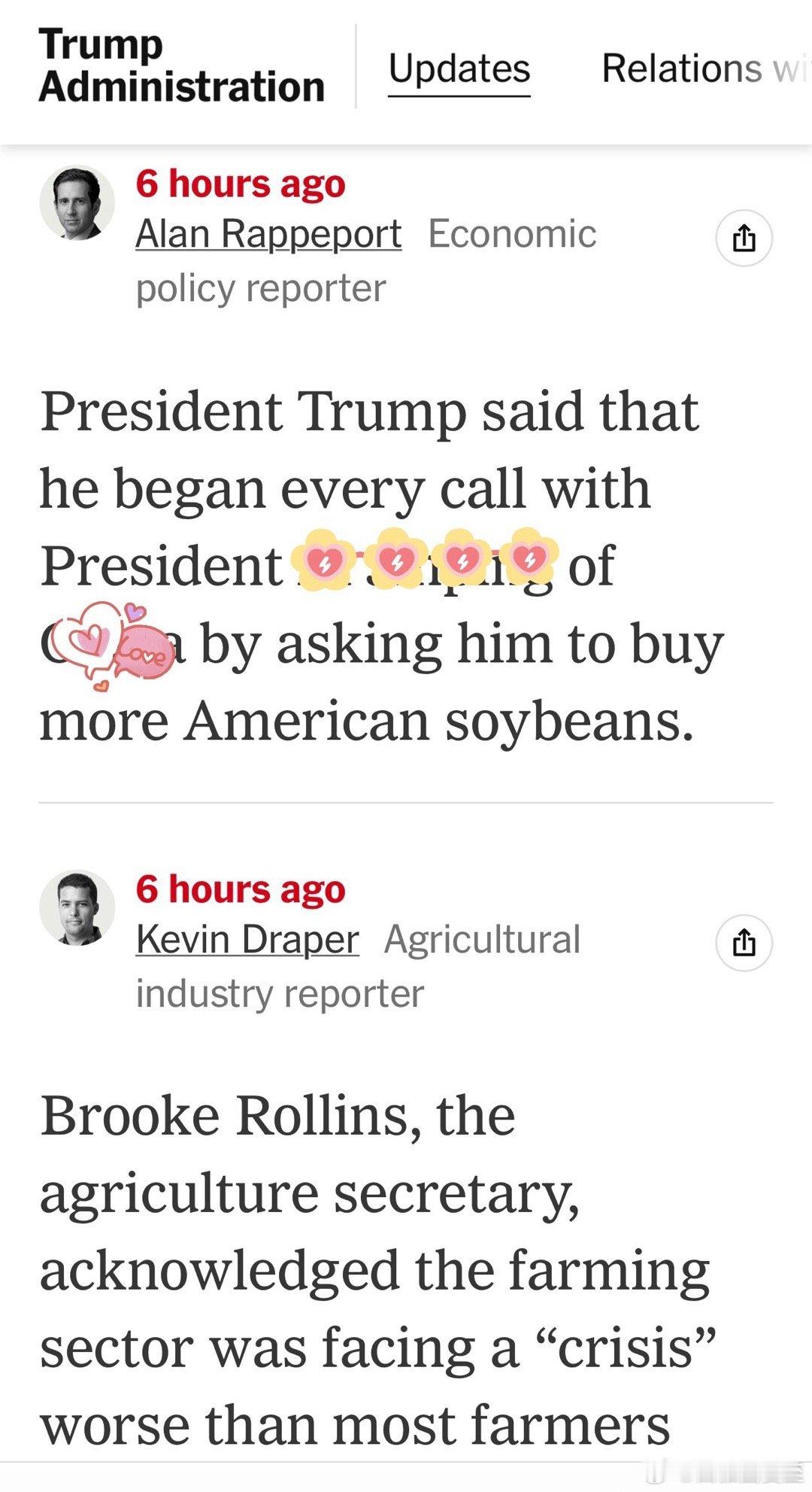 美国总统今天在白宫接见农民代表、宣布$120亿农业补贴时说:“我每次给他打电话,一上来都是让他多买大🫘”