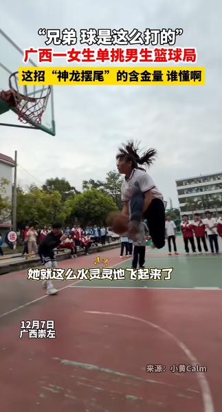 万万没想到!近日广西一伙男生正在球场上打篮球,一位女生走过来说让我试试吧,围观的其他学生小声的说,就她这样,个子这么矮,还戴着近视眼镜,会打篮球吗?结果女生一阵操作让围观的人彻底傻眼! 最近广西某中学的篮球场火了,一段女生单挑男生的视频在学生群里传疯了。 视频里,一个看着娇娇小小、还戴着近视眼镜的女生,把几个男生打得没脾气,最后赢了比赛,好多人看完都不敢信,这反差也太大了! 事儿发生在下午的体育课自由活动时间,几个男生正在球场上打对抗赛,你争我抢的,场面特别热闹,周围围了不少学生看,欢呼声此起彼伏,就在比赛最激烈的时候,这个女生突然走到场边,笑着跟男生们说让她也试试吧。 有人觉得她是来开玩笑的,毕竟平时打球的几乎都是男生,从没见过这个女生碰篮球,质疑的声音越来越多,男生们看她的眼神里,满是轻视。 可女生像没听见这些话似的,径直走到球场中央,等着男生们把球传过来,有个男生半开玩笑地把球扔给她,想看她出糗,没想到女生稳稳接住球,接着就开始运球。 她的动作特别熟练,几个男生想上去断球,都被她灵活地绕开了,没等大家反应过来,她一个假动作晃开防守的男生,三步上篮,球 “唰” 地一下进了篮筐。 全场瞬间没了声音,刚才还在议论的学生都看呆了,几个男生也愣在原地,脸上的轻视慢慢变成了惊讶,女生没停下。 男生们你看看我,我看看你,心里都有点不服气,他们觉得自己身高体重都占优势,还是学校篮球队的主力,怎么可能输给一个看着弱不禁风的女生,最后,一个平时球技最好的男生站了出来,决定跟她比一场。 比赛一开始,男生就想主动进攻,想快点结束比赛,可他刚一运球,女生就找准机会,一下子把球断了下,接着她带着球快速推进,男生赶紧去防守,又被她一个变向晃得差点摔倒,女生趁这个空隙,抬手投篮,又中了。 接下来的几分钟,场面完全被女生掌控了,她运球速度快,假动作逼真,男生根本防不住,不管男生怎么调整防守策略,女生都能找到突破的机会,投篮也几乎百发百中,比分越拉越大,男生的脸色也越来越难看,额头上全是汗,可就是没办法阻止女生得分。 最后,女生以大比分赢了比赛,拿着球走到男生的面前的时候说了一句,打球并不是只看表面的身高,技术也同等的重要。 周围的学生这才反应过来,瞬间爆发出欢呼声,刚才质疑她的几个男生,也红着脸走过来,跟她道歉,还说特别佩服她的球技,女生只是笑了笑,说自己平时就喜欢打篮球,已经练了好几年了。 后来等大众刷到了之后有人评论说这也太帅了吧,完全打破了我对女生打篮球的印象,真是人不可貌相,还有人说,那些一开始看不起她的男生,估计现在脸都疼了,以后可不敢随便以貌取人了。 也有网友提到,这件事让大家明白,打篮球不只是靠身高和力量,技巧和努力更重要,不管是男生还是女生,只要喜欢,愿意付出时间练习,都能把篮球打好,性别和外貌,从来都不是限制一个人追求热爱的理由。 其实这个女生的经历,也给了很多人启发,生活里,我们总容易凭着第一感觉去判断一个人,可往往忽略了,每个人都可能藏着意想不到的能力。 信息来源 : 杭州网
