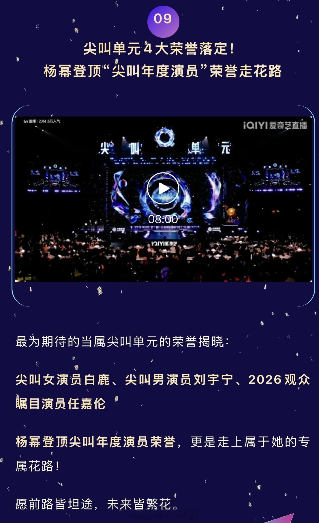 爱奇艺尖叫之夜高光时刻再一次认证杨幂生万物成为2025标杆之作杨幂登顶“尖叫年度演员”荣誉,走专属花路愿前路皆坦途,未来皆繁花💐