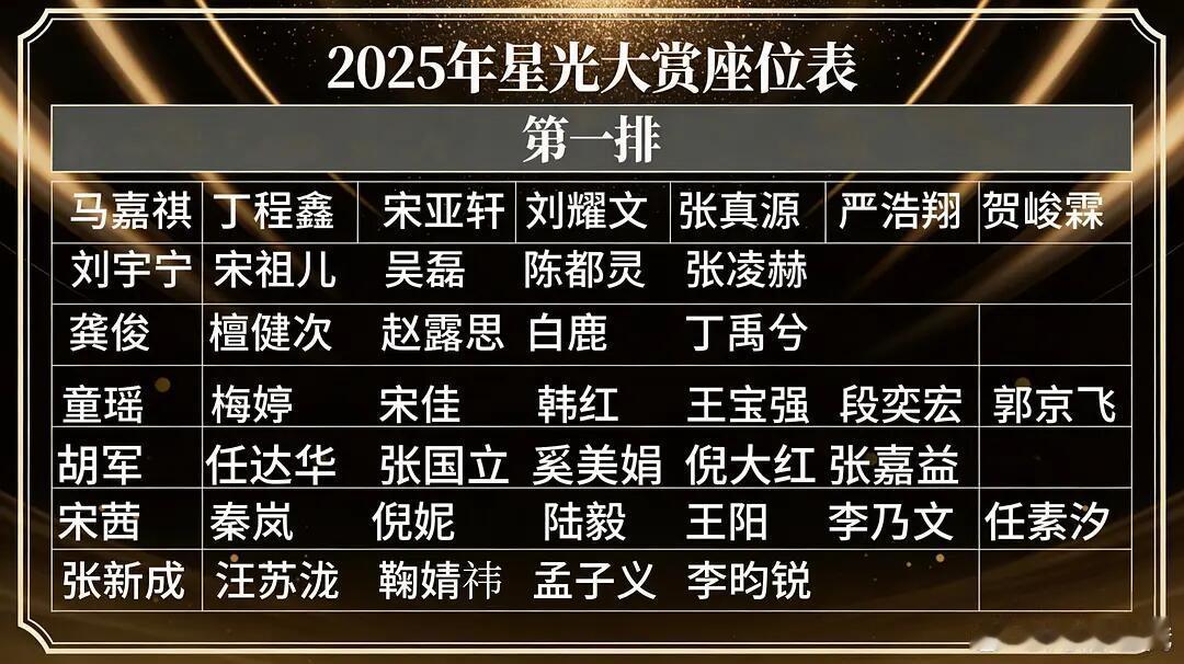 🍉网传的2025星光大赏座位图第一排。你们觉得看点是什么?