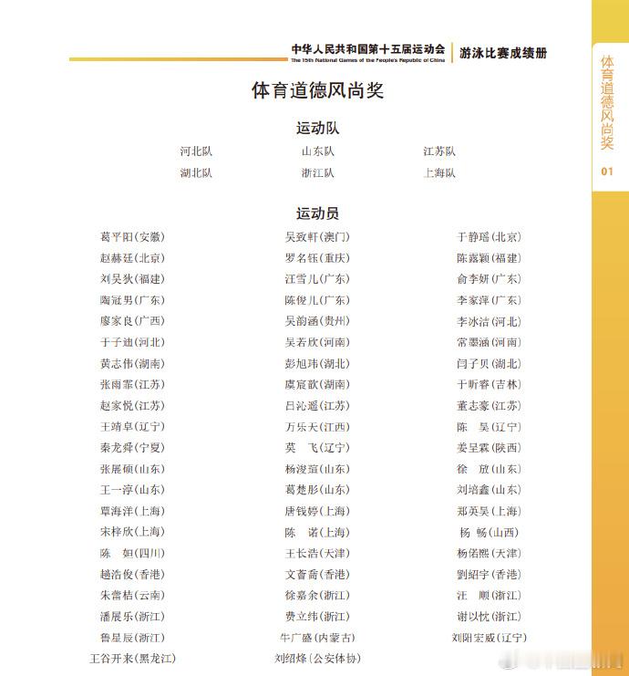 汪顺获体育道德风尚奖汪顺张博恒全运会再获殊荣 第十五届全国运动会体育道德风尚奖公布,浙江游泳运动员汪顺、潘展乐、徐嘉余等获体育道德风尚奖,湖南体操运动员张博恒获体育道德风尚奖。 日复一日的坚持换来的不止有摘金夺银的高光时刻,更有榜样的力量!