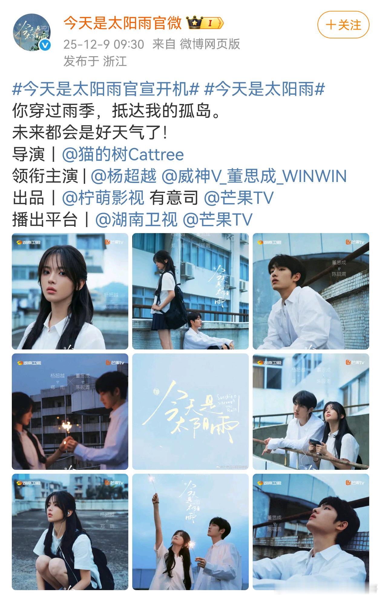 杨超越 董思成《今天是太阳雨》官宣开机!