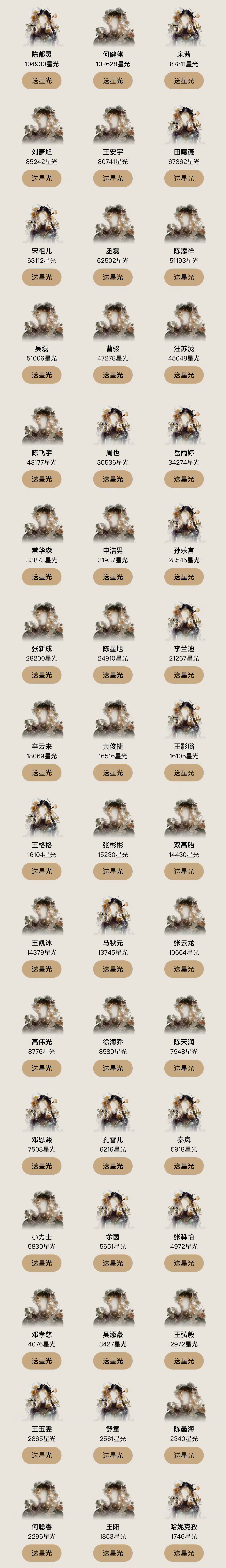 星光大赏投票星光墙星光值排行:时代少年团刘宇宁丁禹兮赵露思鞠婧祎龚俊