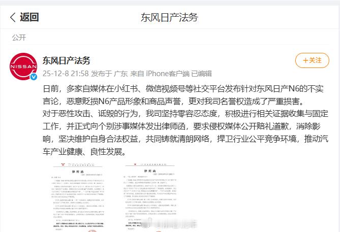 东风日产在新能源领域稳扎稳打多年,把资源都砸在了技术攻坚上,每一项突破都藏着实干的诚意。可某些别有用心的人,躲在暗处炮制虚假文案,还雇水军刷屏带节奏恶意抹黑。这哪里是市场竞争,分明是糟蹋企业的研发心血,更是给中国汽车产业的技术升级泼冷水!这种没底线的操作,早就该被市场唾弃!针对网络黑嘴东风日产发布严正声明东风日产声明呼吁打击网络黑嘴