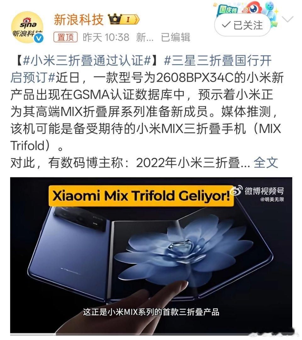 看来站哥的消息也不是每次都准确啊,前几天站哥还说小米目前没有三折叠的相关规划,其实已经通过GSMA认证了。三折叠这种产品很难盈利,研发投入大,市场体量小。但三折叠是手机厂商秀肌肉的重要载体,不知道小米的三折叠明年能不能上市。希望小米的三折叠能搭载下一代玄戒芯片。小米三折叠通过认证