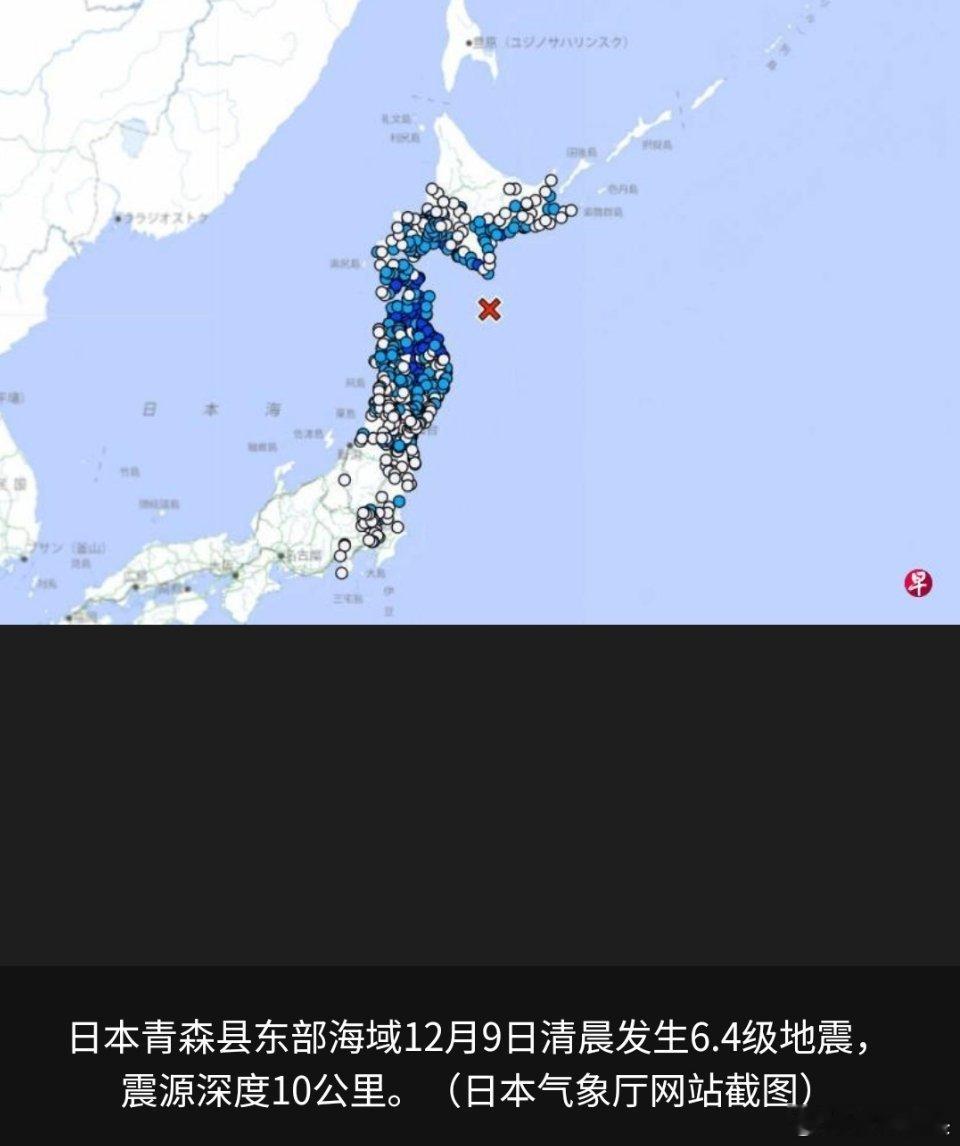 日本又发6.6级地震正所谓一鼓作气,再而衰,三而竭。这日本地震也搞这套?日本气象厅消息显示,星期二(12月9日)清晨6时52分,日本青森县东部海域发生6.4级地震,震源深度10公里。青森县东部海域星期一(8日)晚上11时15分左右发生7.5级地震,震源深度54公里。气象厅发布“海啸警报”,过后下调为“海啸注意”级别,并在星期二凌晨解除所有海啸预警。综合共同社和日本地方媒体报道,截至目前,青森县有16人受伤。其中,八户市有12人受伤,首府青森市、五所川原市、东北町和六所村各有一人受伤。海外新鲜事