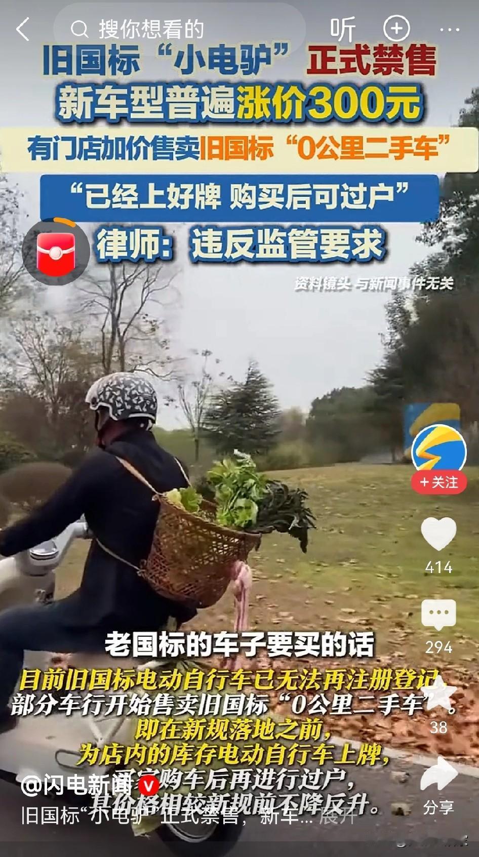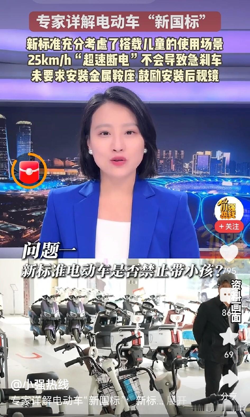 12月1日电动车新国标终于出来了, 骑车的人会更安全了。 可是有人吐槽25码,上班得早起了,要不又要迟到了,改改生物钟吧。 还有人说买菜、接娃、带雨衣也别想了,因为没地方放了。 要是接低年级小学生,估计还能坐在踏板上。 看看原本想处理的旧国标车,为了接送我的大宝宝,还是换换电池,重新上岗吧。 想了想这又节省了4000块买新车的钱,今天必须要加2个鸡腿。[捂脸][捂脸][捂脸]