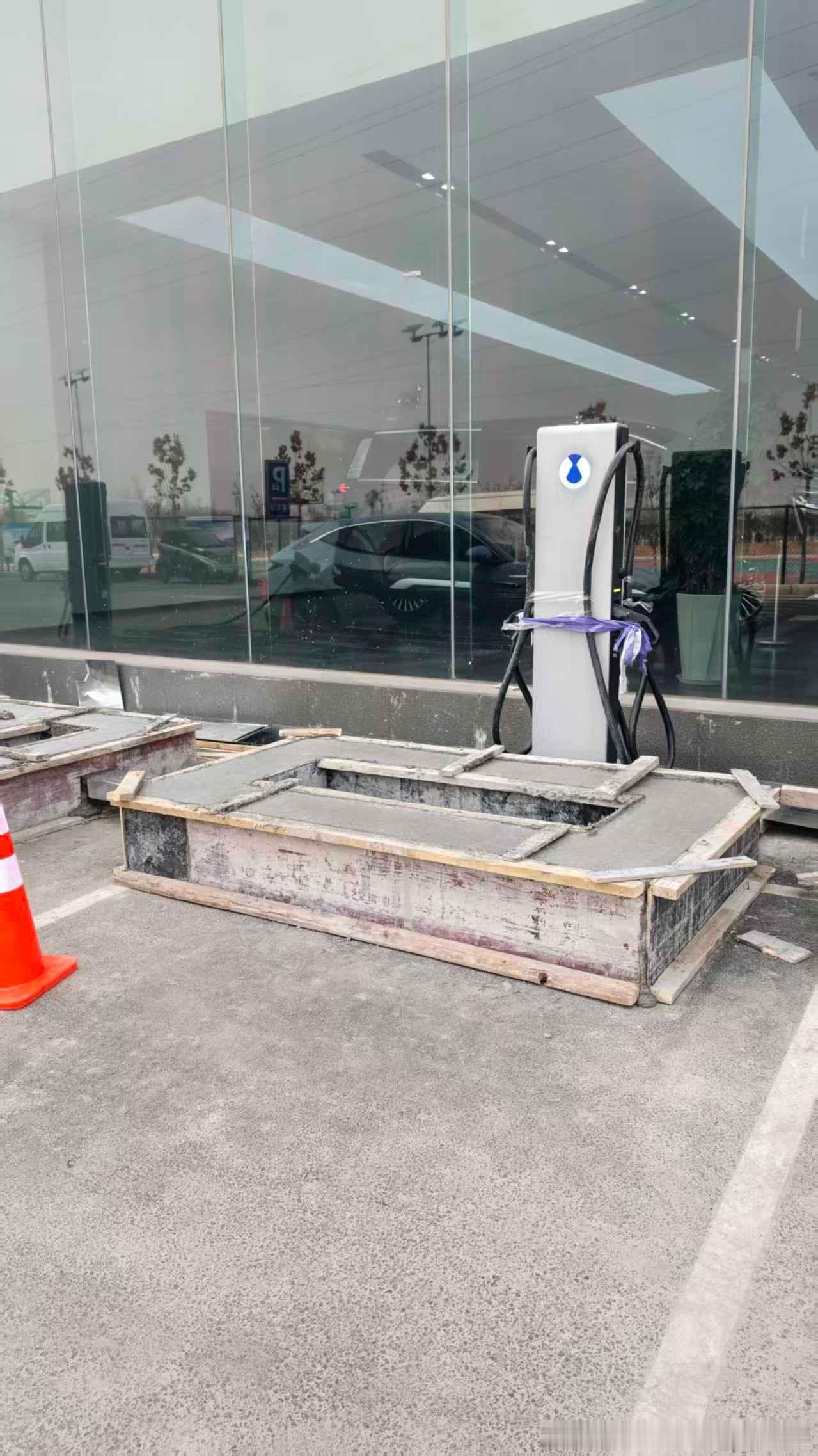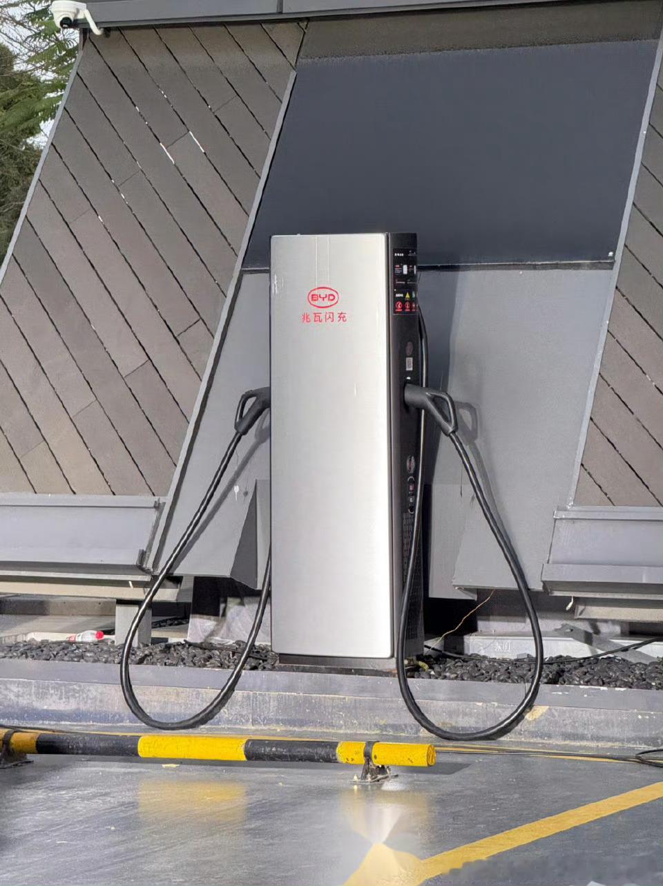腾势的店里的新充电桩样子很熟悉,甚至还瘦了一点。