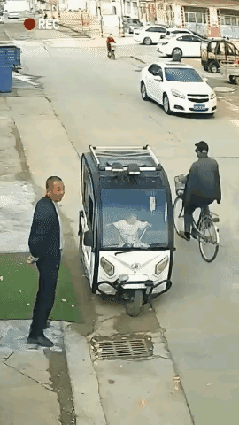 公路上惊险的一幕 男子把三轮车停在路边,三岁的孙子坐在三轮车上,他万万没想到,孙子把车开走了,并且是倒着开,这时候,他赶快使劲拽着三轮车不让跑,他的力量是有限的,看着三轮车把后边的一个男子撞倒。 三轮车还在继续倒着跑,路上一个好心人赶紧去追三轮车,三轮车跑了十几米后,被一辆车给堵住了,三轮车总算停下来了。 这一幕是多么危险呀,幸好没有把人撞伤,如果把人撞伤,后果不堪设想。 这个男子大意了,下车时没有把钥匙拔掉,没想到孙子这么小,会模仿大人开车,孙子的胆特别大,坐在车里开着就跑,初生牛犊不怕虎。 吸取教训,引以为戒。下次下车时,切记把钥匙拔掉,避免小孩子开车,安全无小事,生命大于天。 声明(视频来源于网络,侵权联系删除)