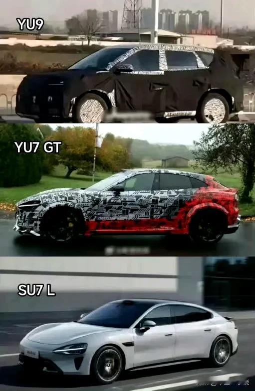 小米三款新车齐曝光!小米YU9、YU7 GT、SU7 L三箭齐发。涵盖行政级轿车、高性能SUV、大型SUV。小米汽车全车型覆盖的节奏太快了!热度真是一波接一波!(图片来源网络)