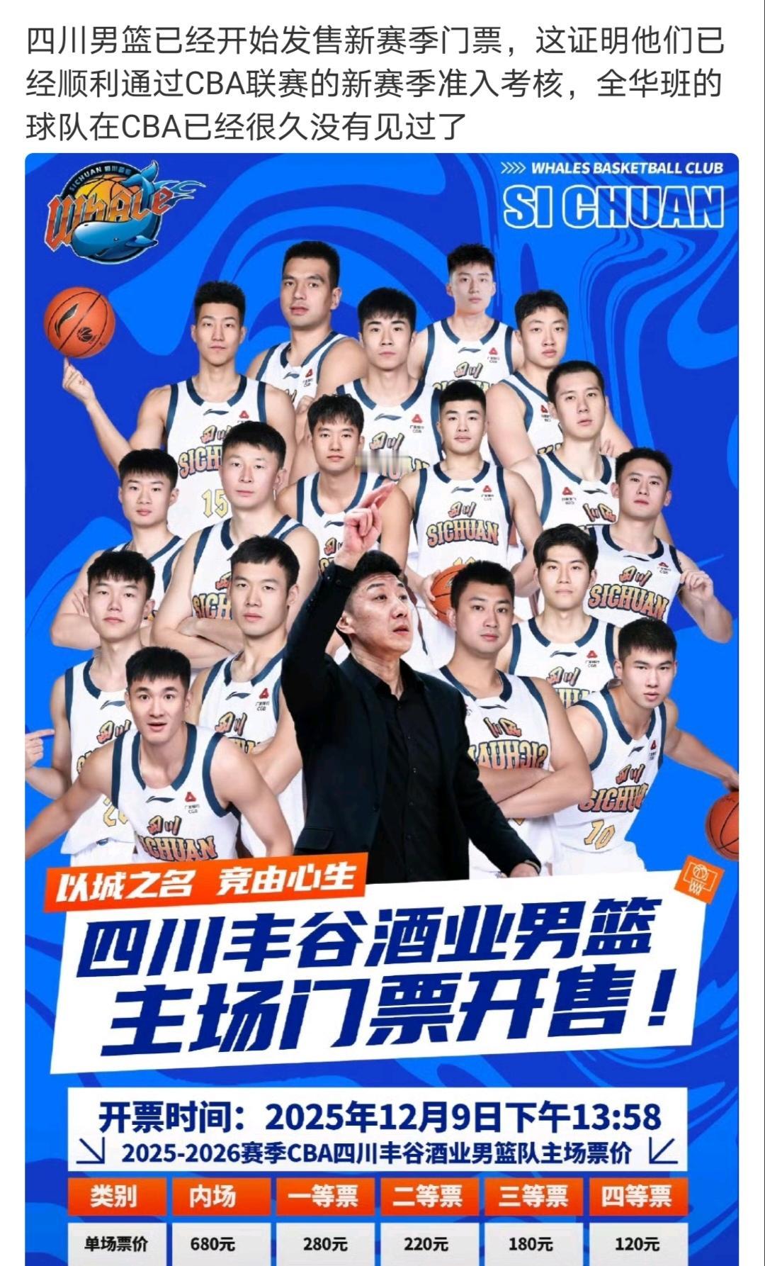 CBA有点意思,至今还没看到联赛直播赛程,大概率没有谁接盘转播? 联赛还没开打,南京同曦就炒掉了教练。 不知道四川是怎么通过新赛季准入?反正已经开始卖门票了,全华班来了。