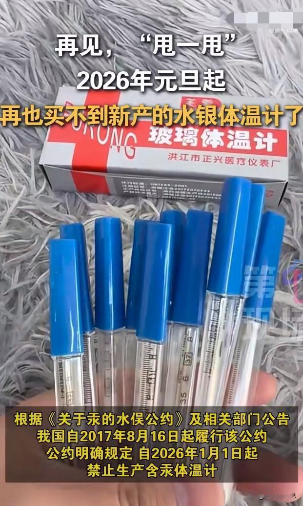 大家听说了吗? 从明年1月1日起,禁产水银体温计。国家出于安全考虑, 已经下定决心要淘汰它了。 用过水银体温计的都知道, 它便宜好使, 关键量的比电子的准。 只要不打碎它,一根能用一辈子。 趁着现在还能买到 我去赶紧下楼买了几根,放家里备用, 不然以后想买都很难买到了。