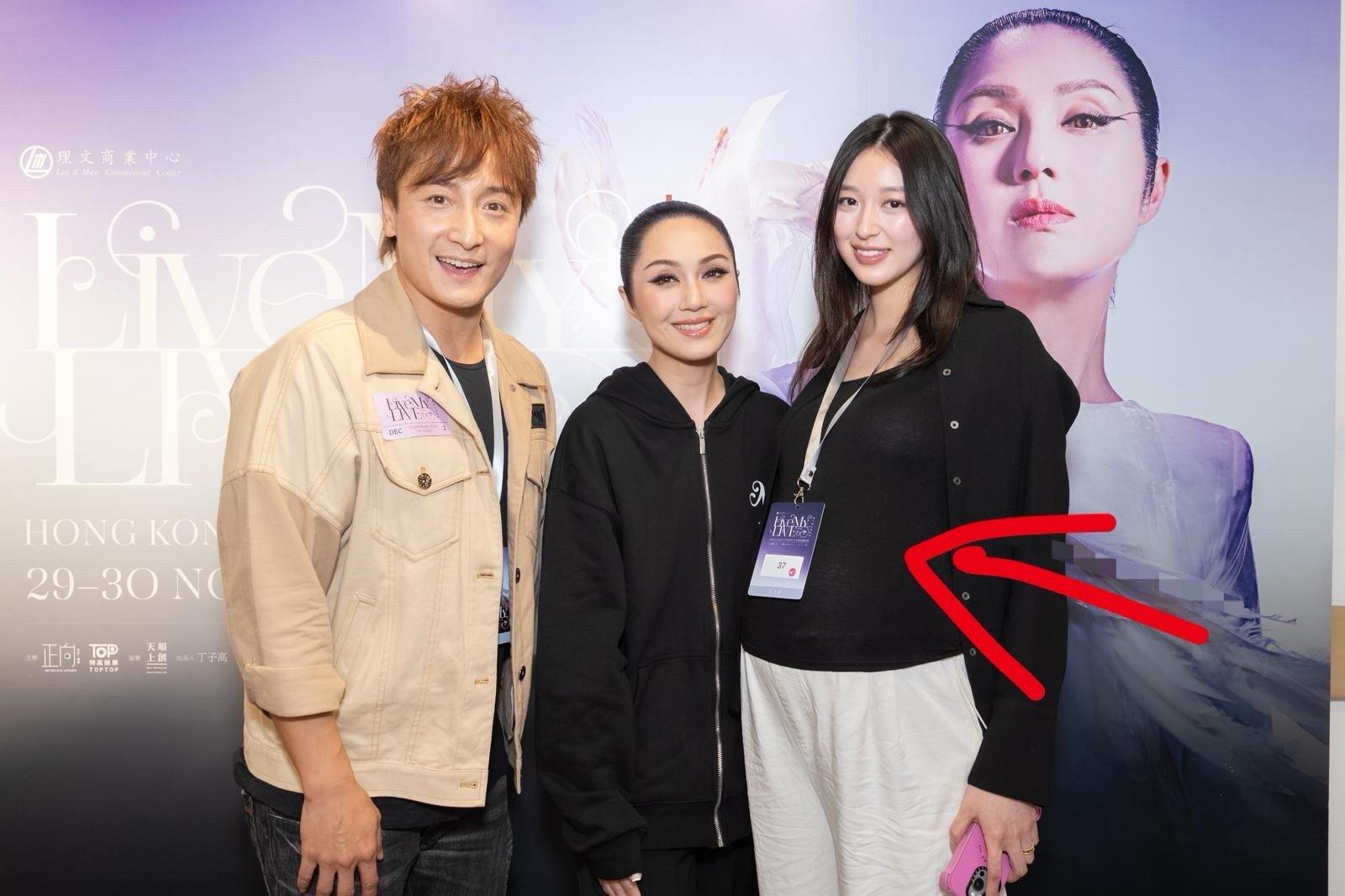 方力申老婆叶萱顶着大肚子看杨千嬅演唱会 ,在一众明星中也非常抢眼