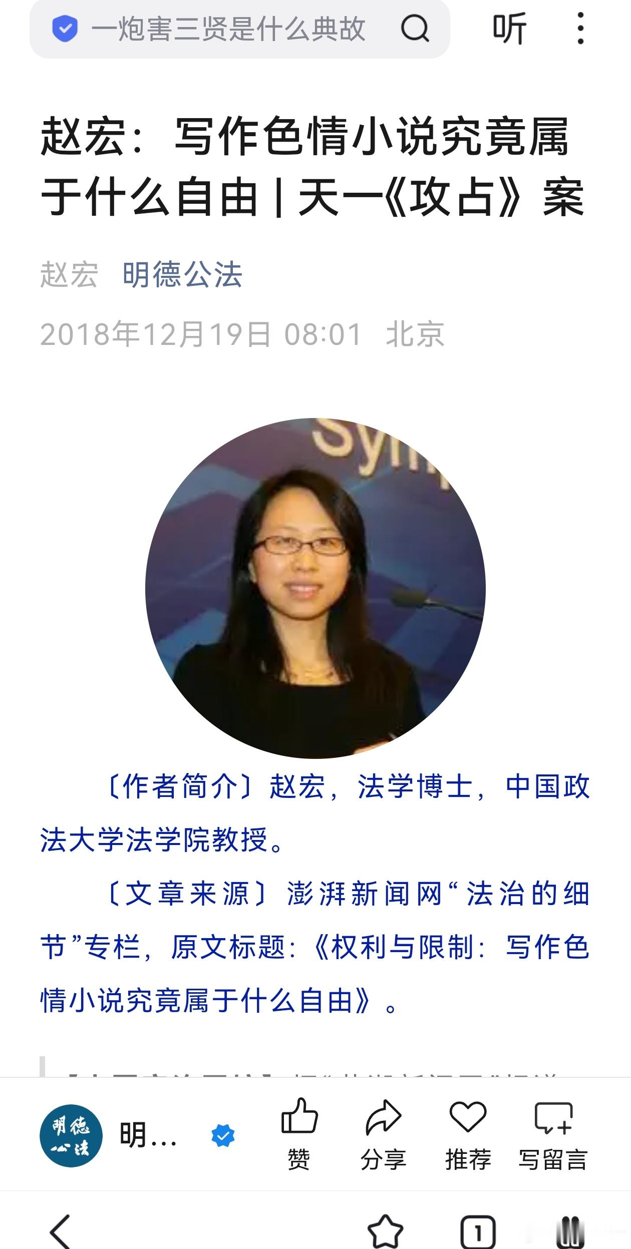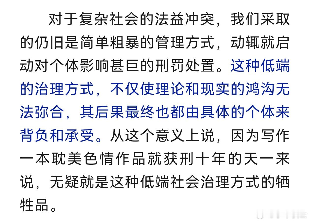 我的天,不仅为吸毒松绑,为袭警入刑者喊冤,还为黄色小说站台,说写黄色小说是“艺术自由”,作为大学教授,这是要给大众灌输什么样的法学理念,什么样的价值观?