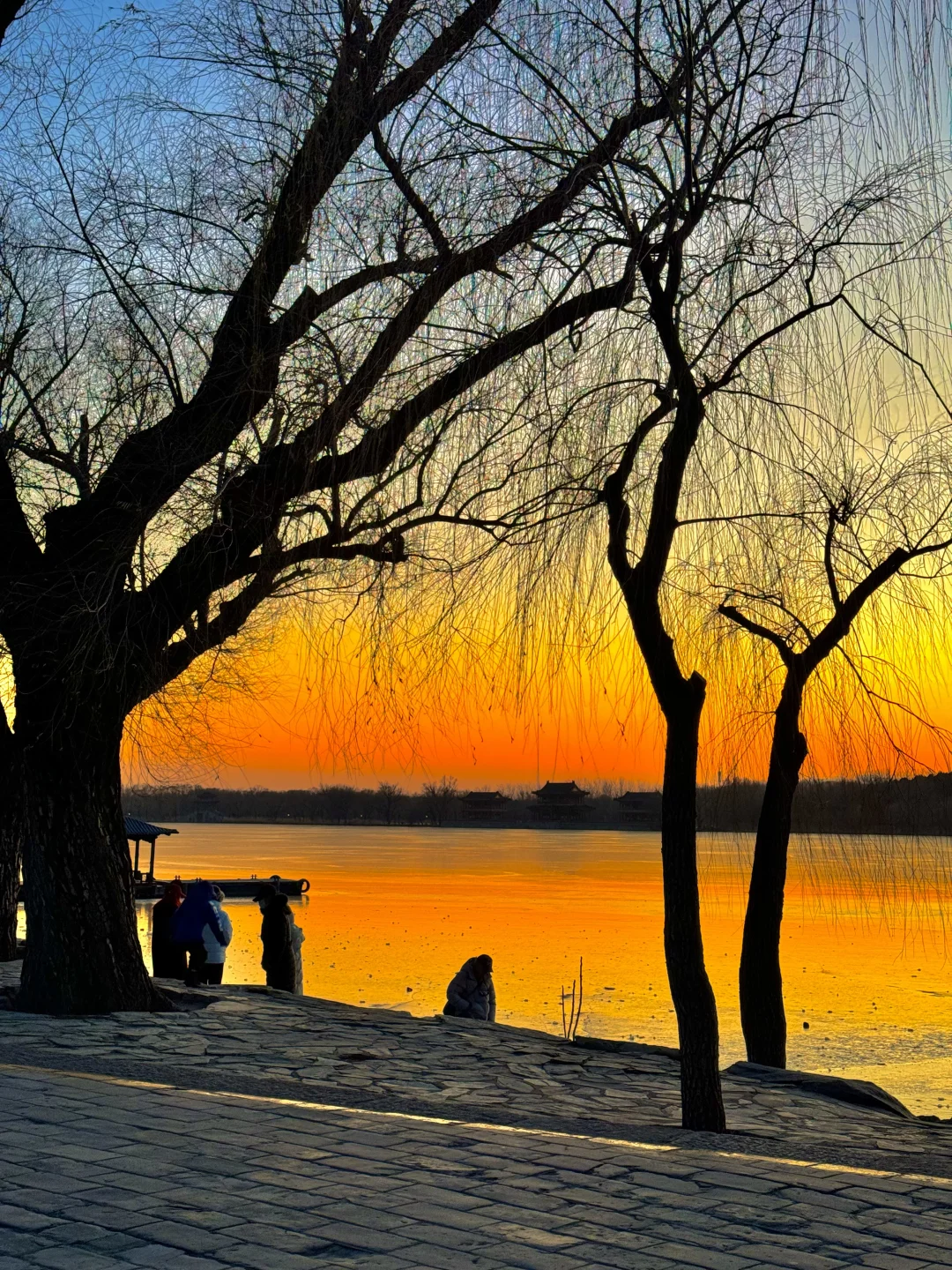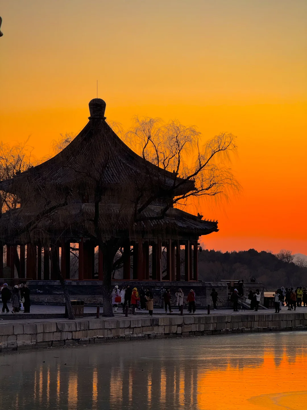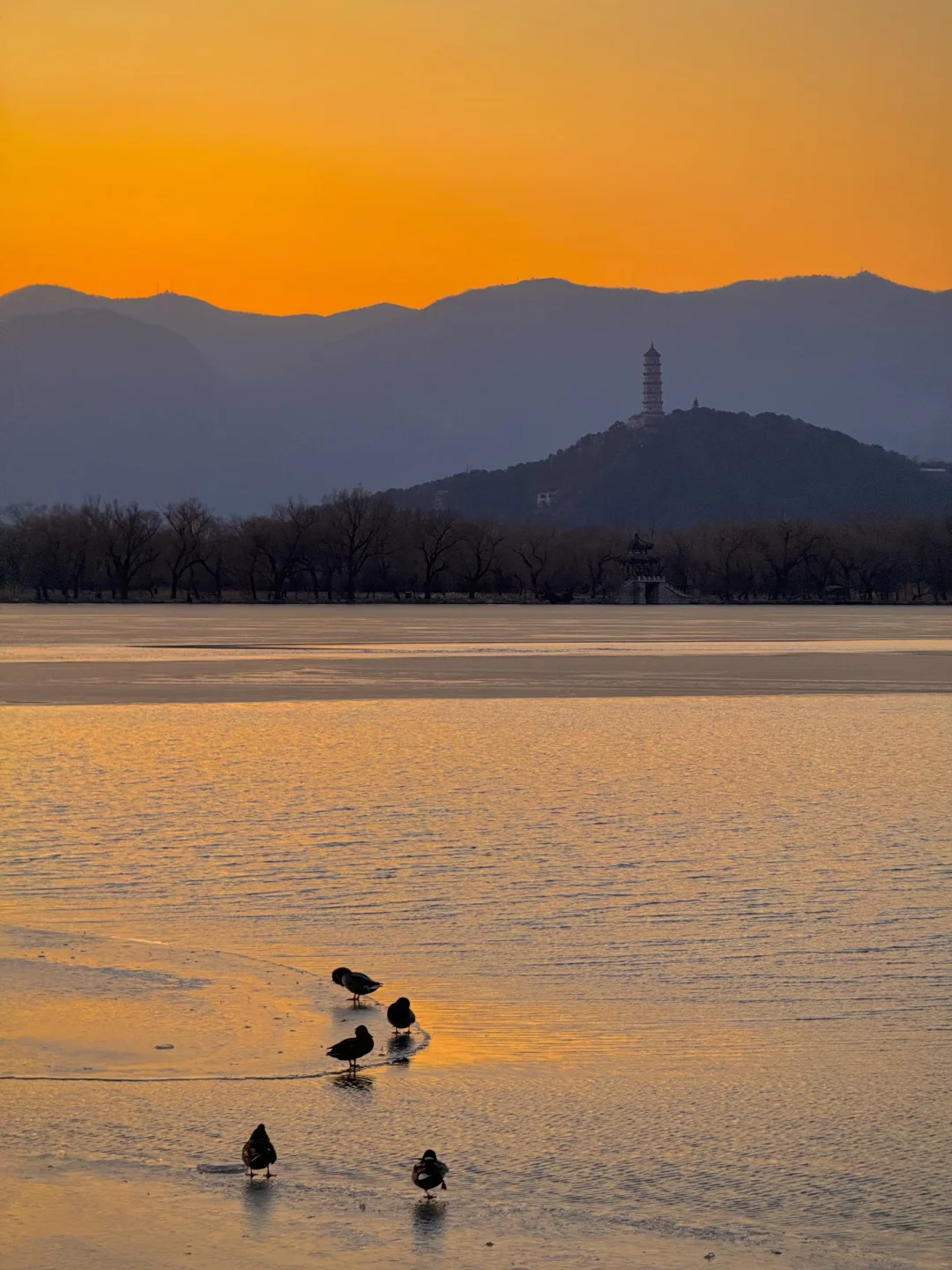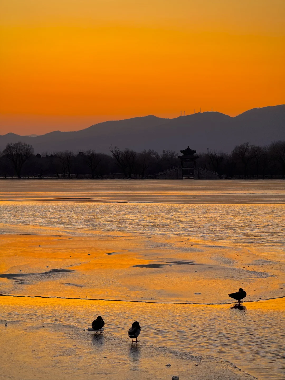 在颐和园拍到了橘子海冰面落日 今年冰场应该是没问题了。