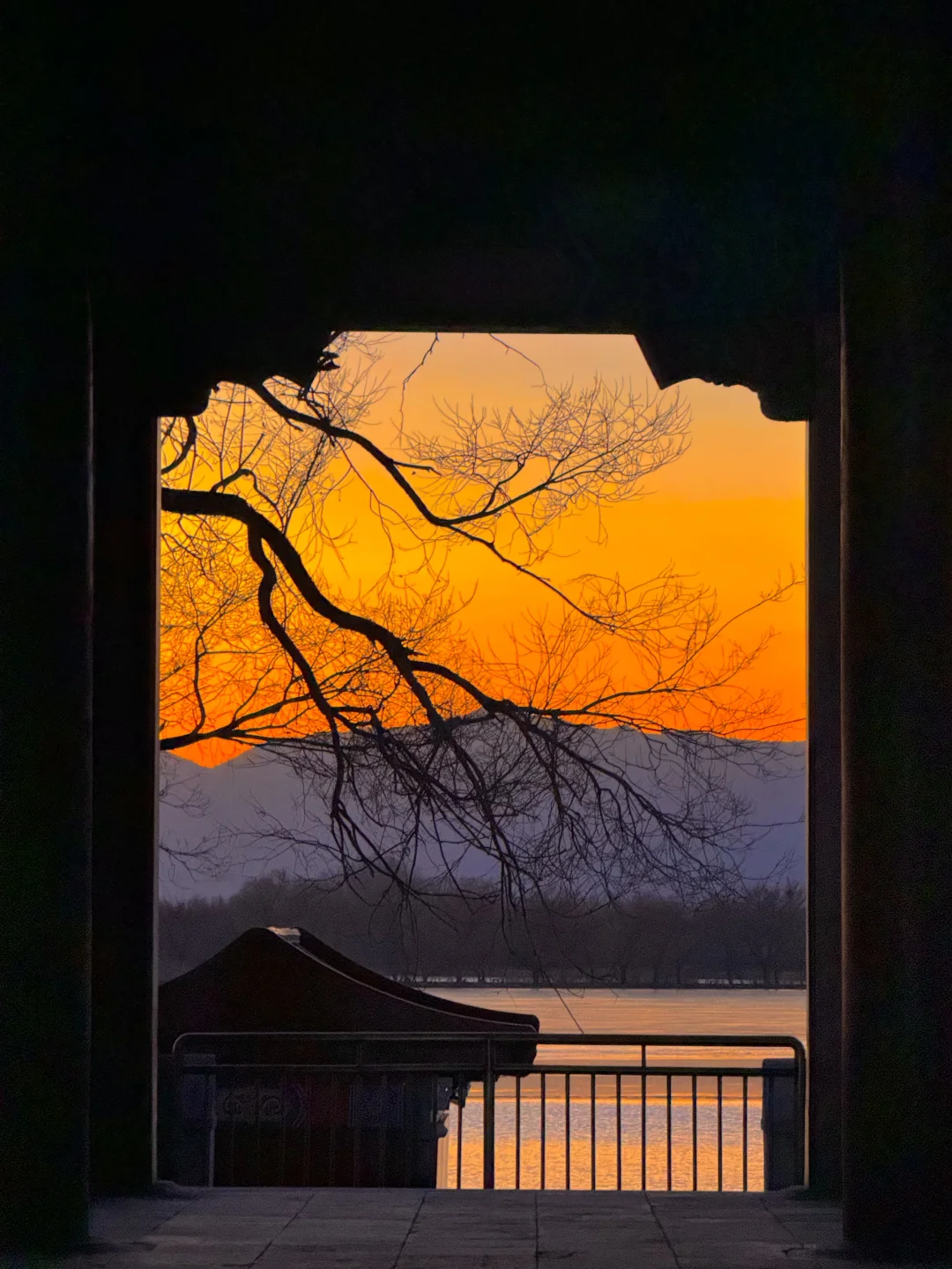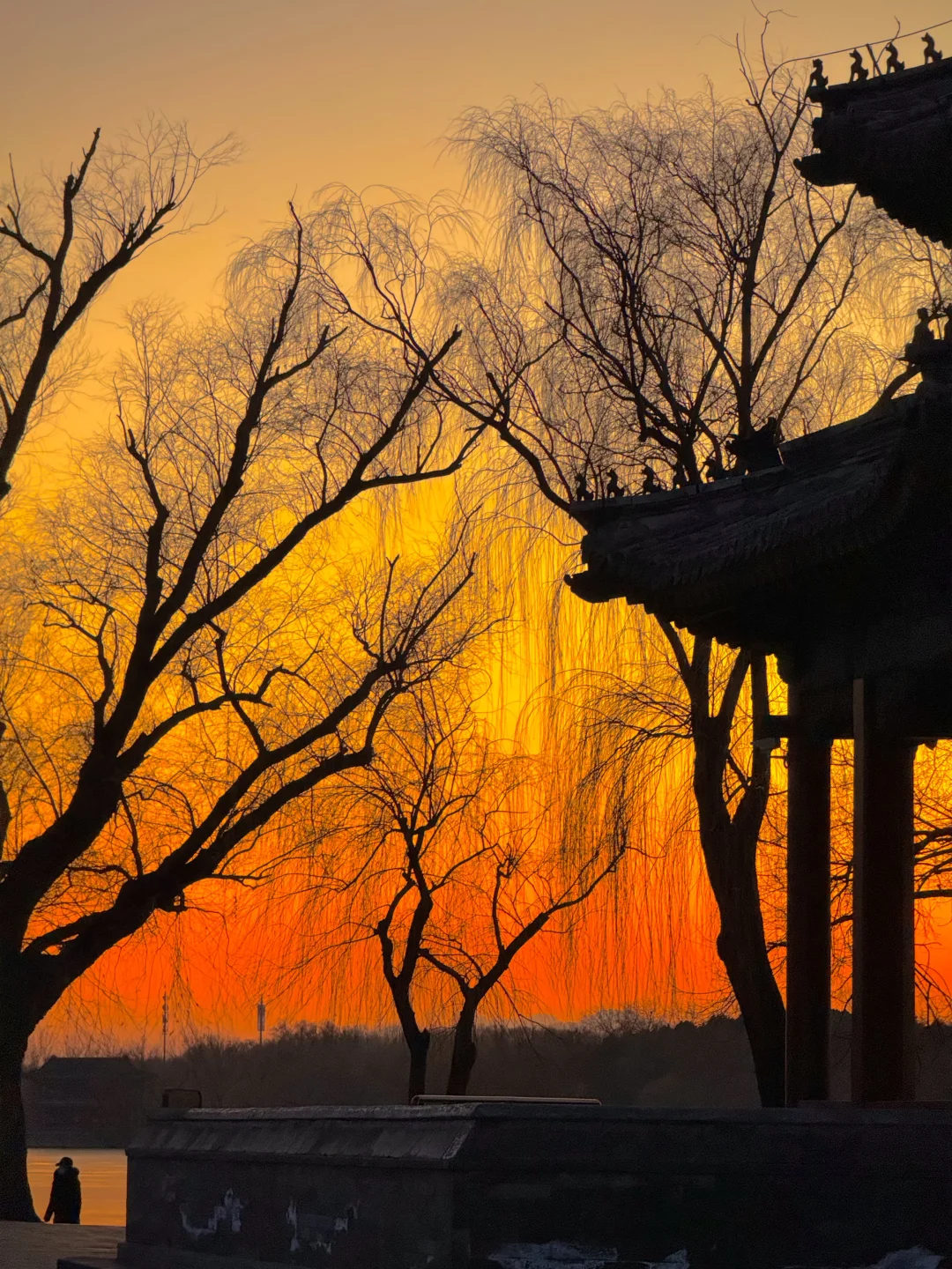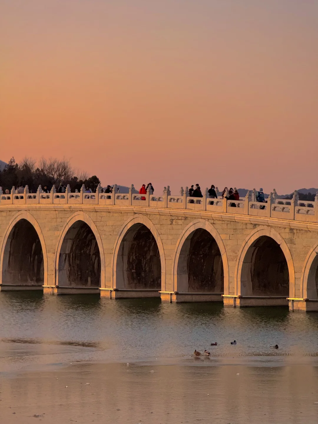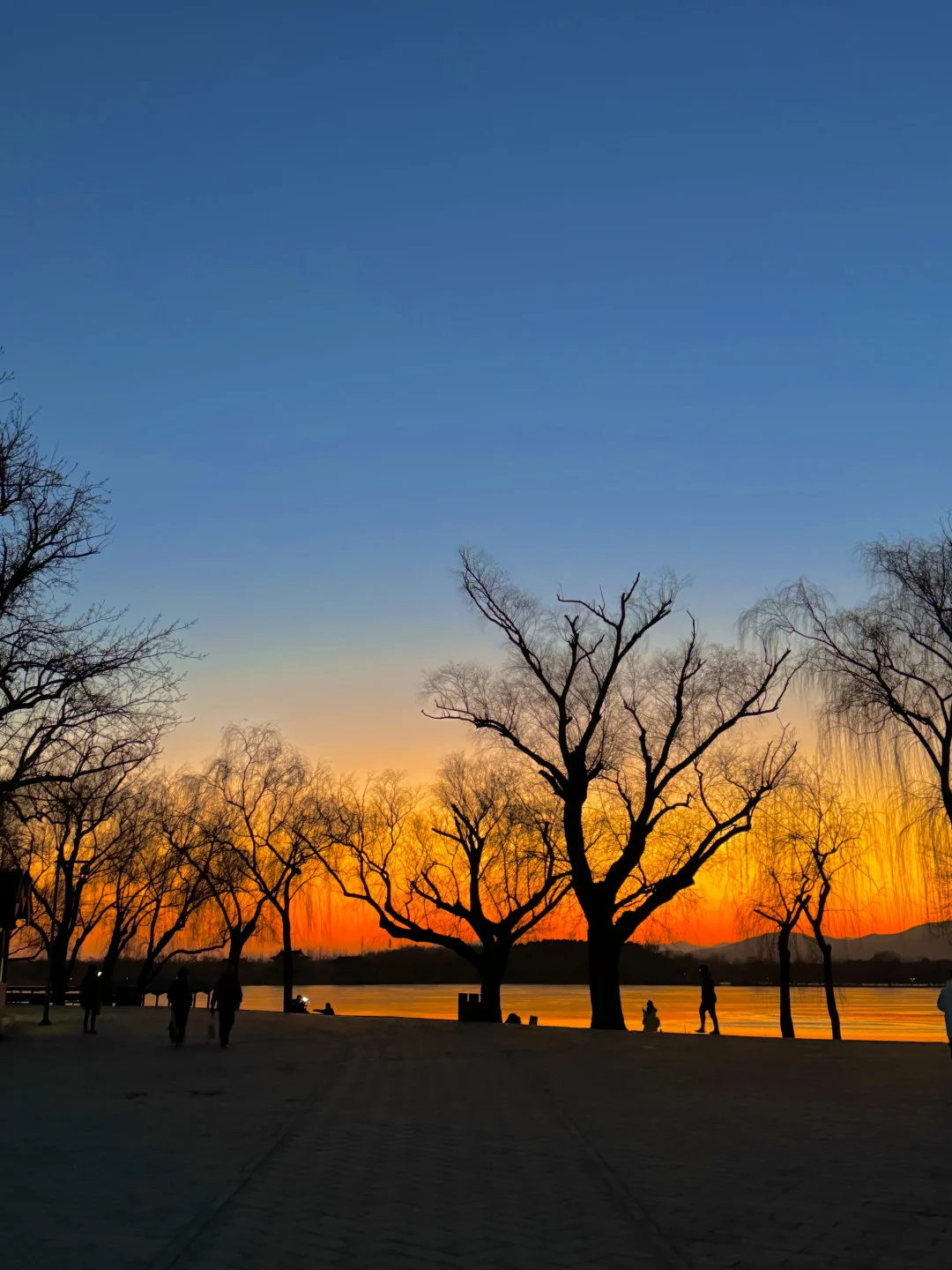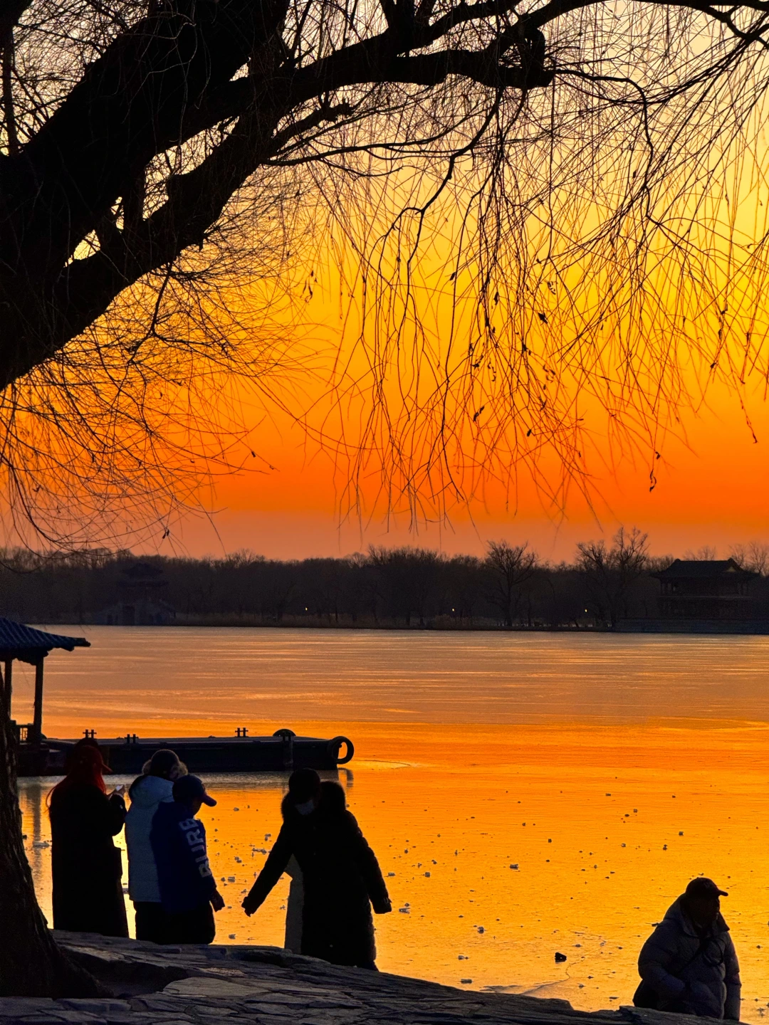 在颐和园拍到了橘子海冰面落日 今年冰场应该是没问题了。