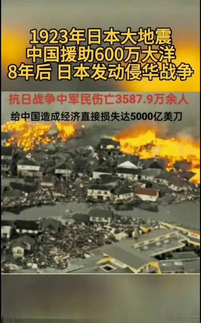 1923年,日本关东大地震,中国总计援助日本600万银元。也是日本灾后收到的首笔国际援助。但日本的回报是,8年之后,发动侵华战争,侵略中国。恩将仇报,以怨报德的民族。 今天日本九州本岛7.3地震,你准备好了吗?