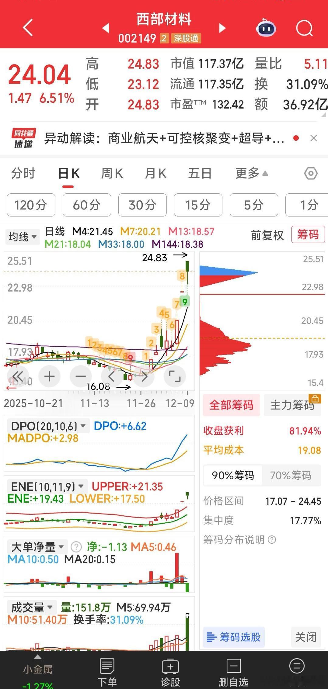 【五牛的走式图】高乐股份,达华智能,西部材料,双星新材,安妮股份。