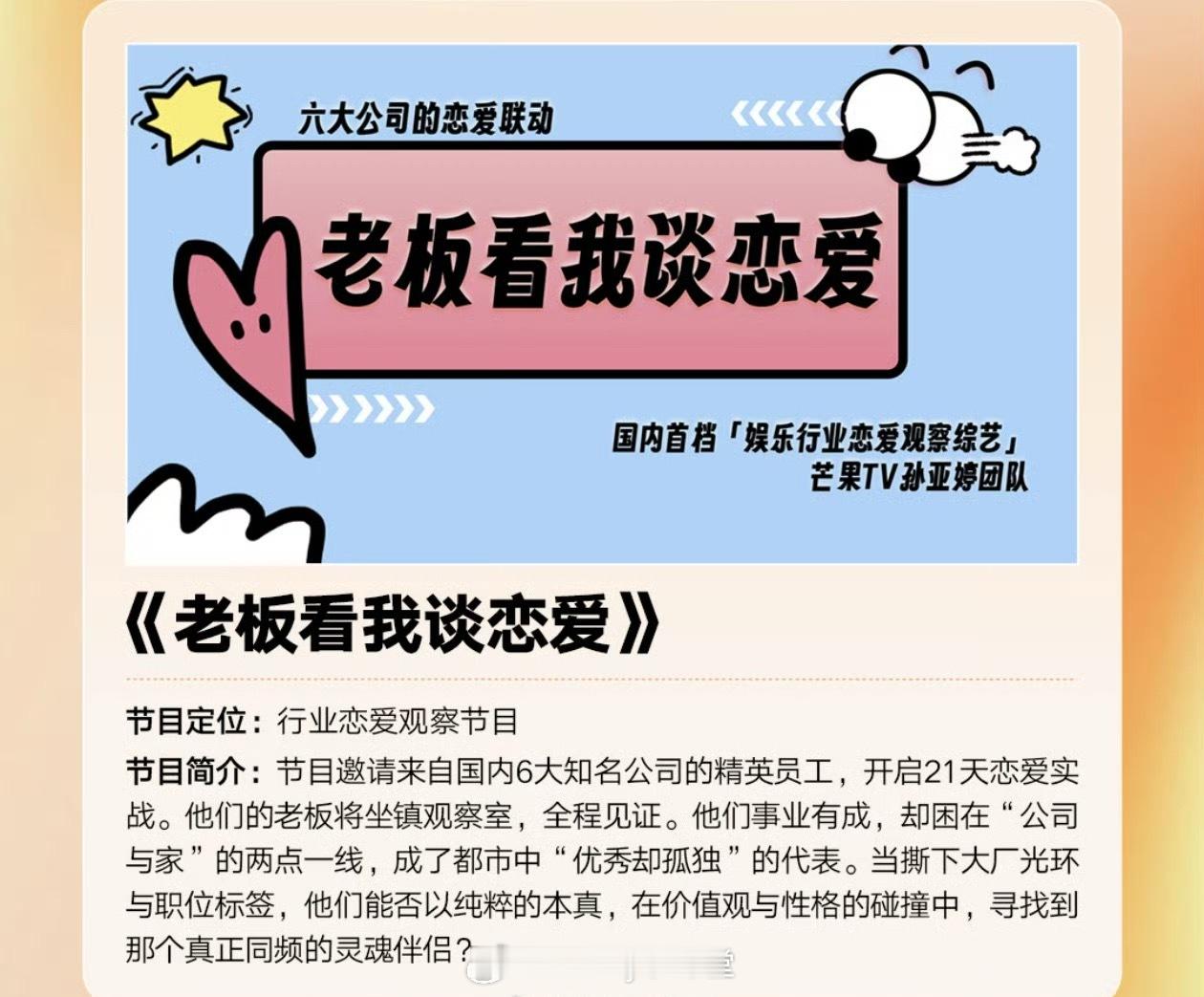 芒果tv即将推出的综艺《老板看我谈恋爱》,国内6大知名公司的精英员工,开启21条