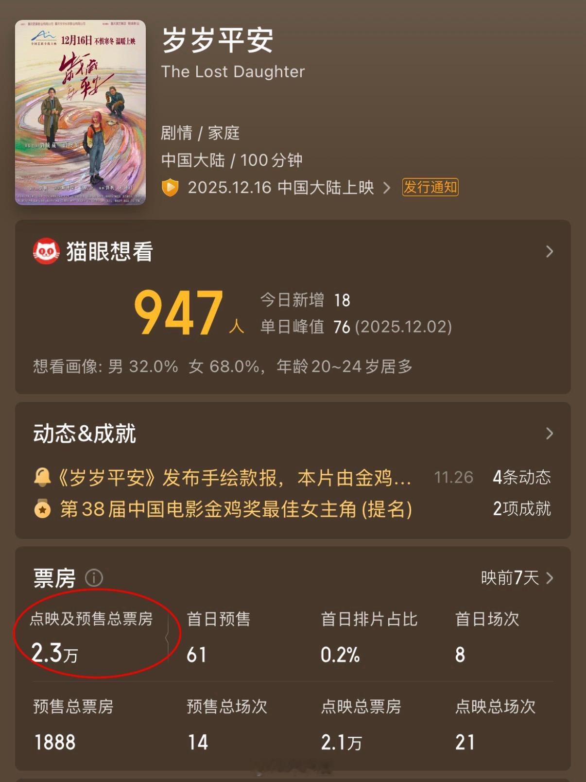 段奥娟提名金鸡奖的时候,你们骂:一部没看过的片子竟然提名了影后(实际上评奖与是否上映无关),现在好不容易上映了,也没见你们去看~跨年电影愿电影岁岁平安