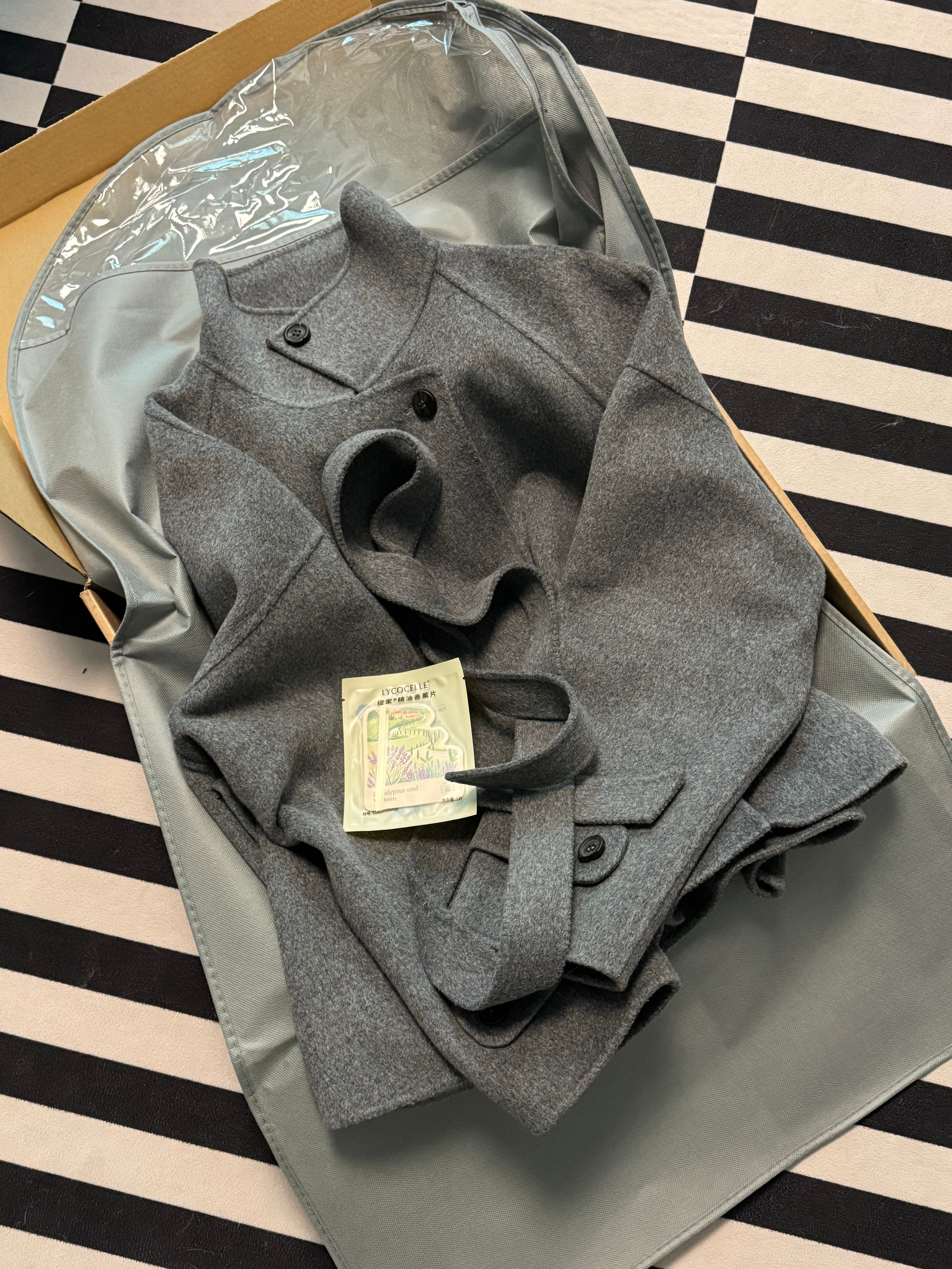 收到了我们的外套,一打开好香呀,等出差回来搭配一下,短款显个高,闪亮你们